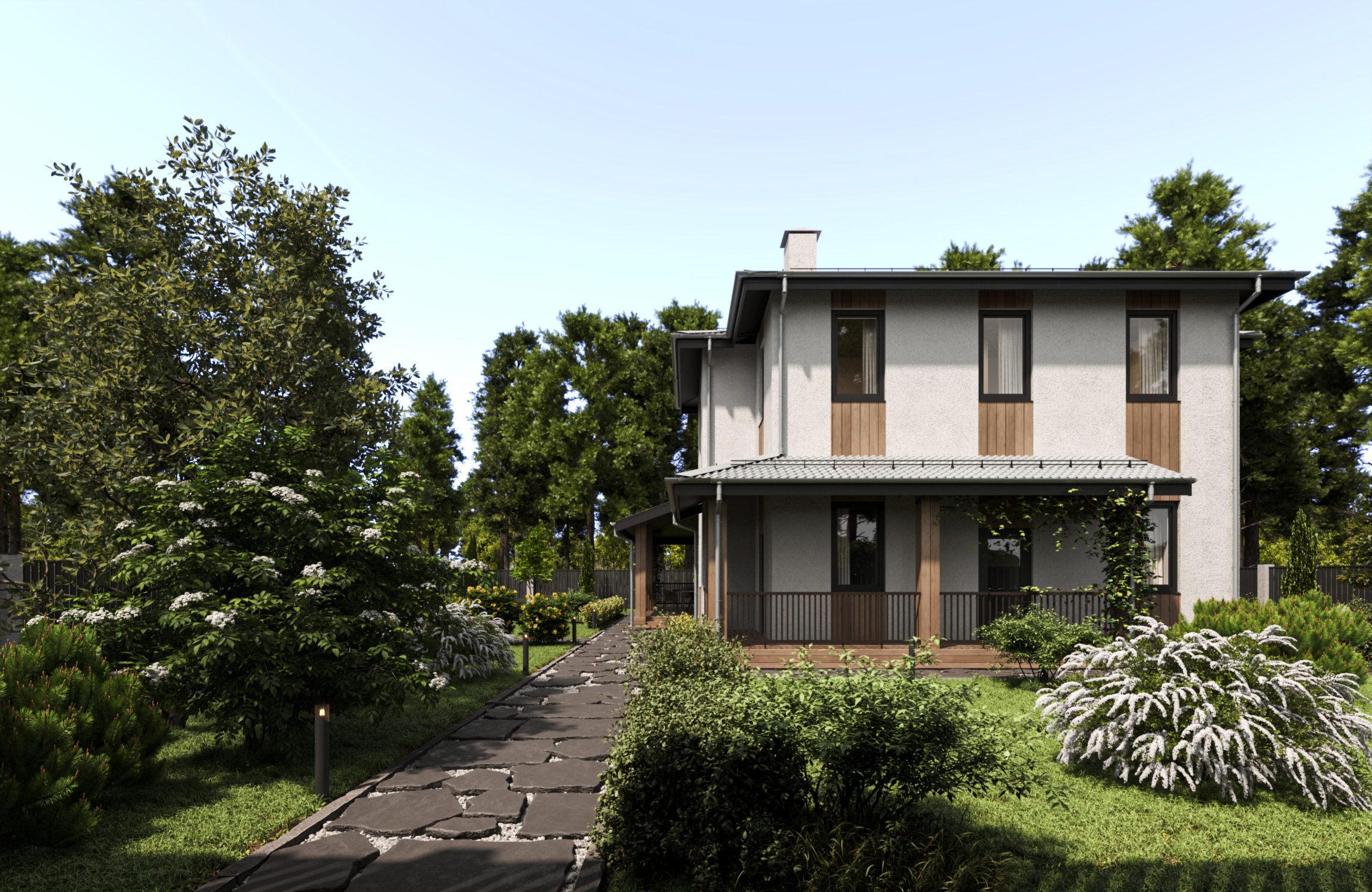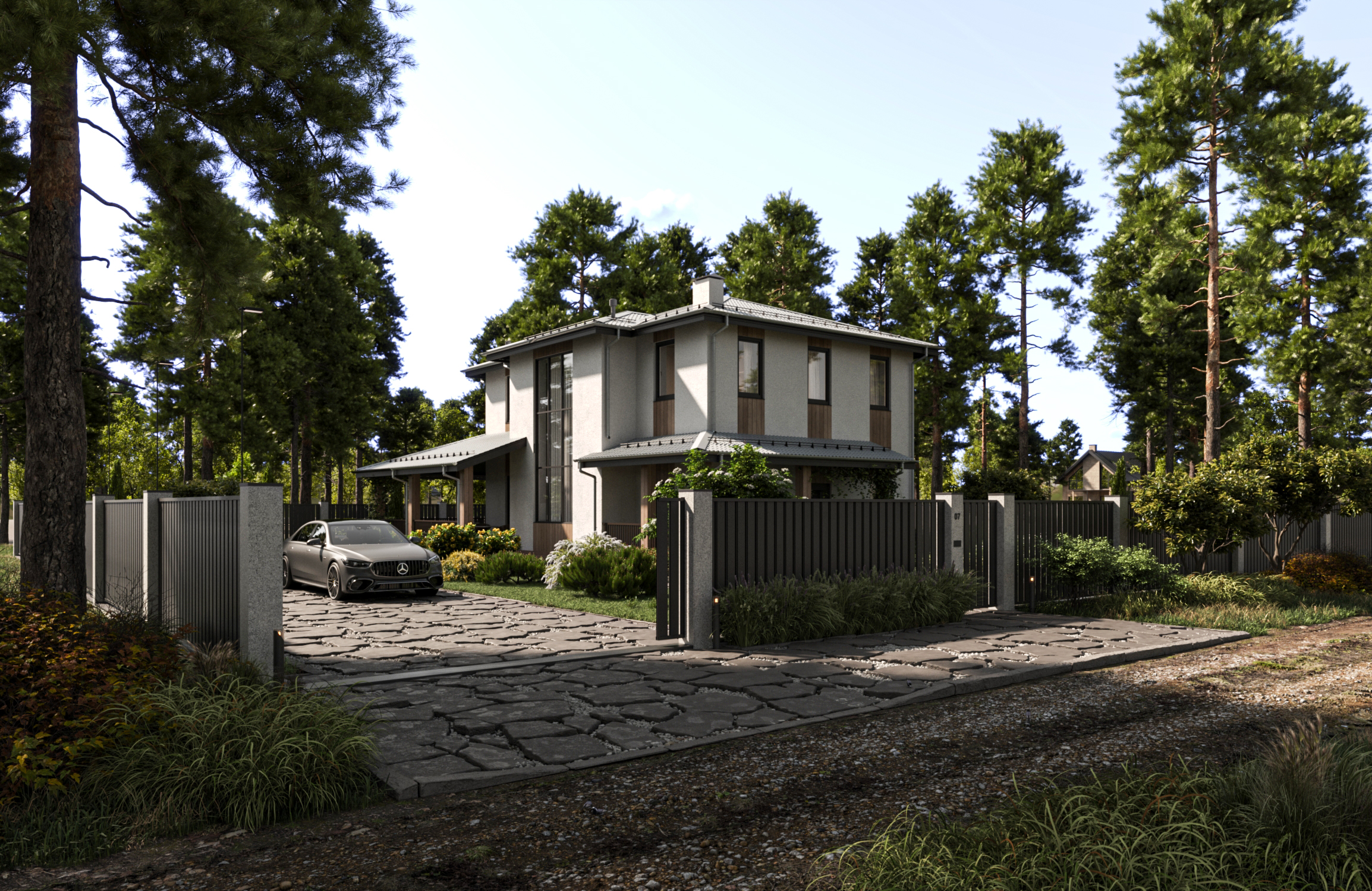 Визуализация экстерьера дома. Экстерьеры редко приходится делать, хочется конструктивной критики, над что улучшить в будущих работах.