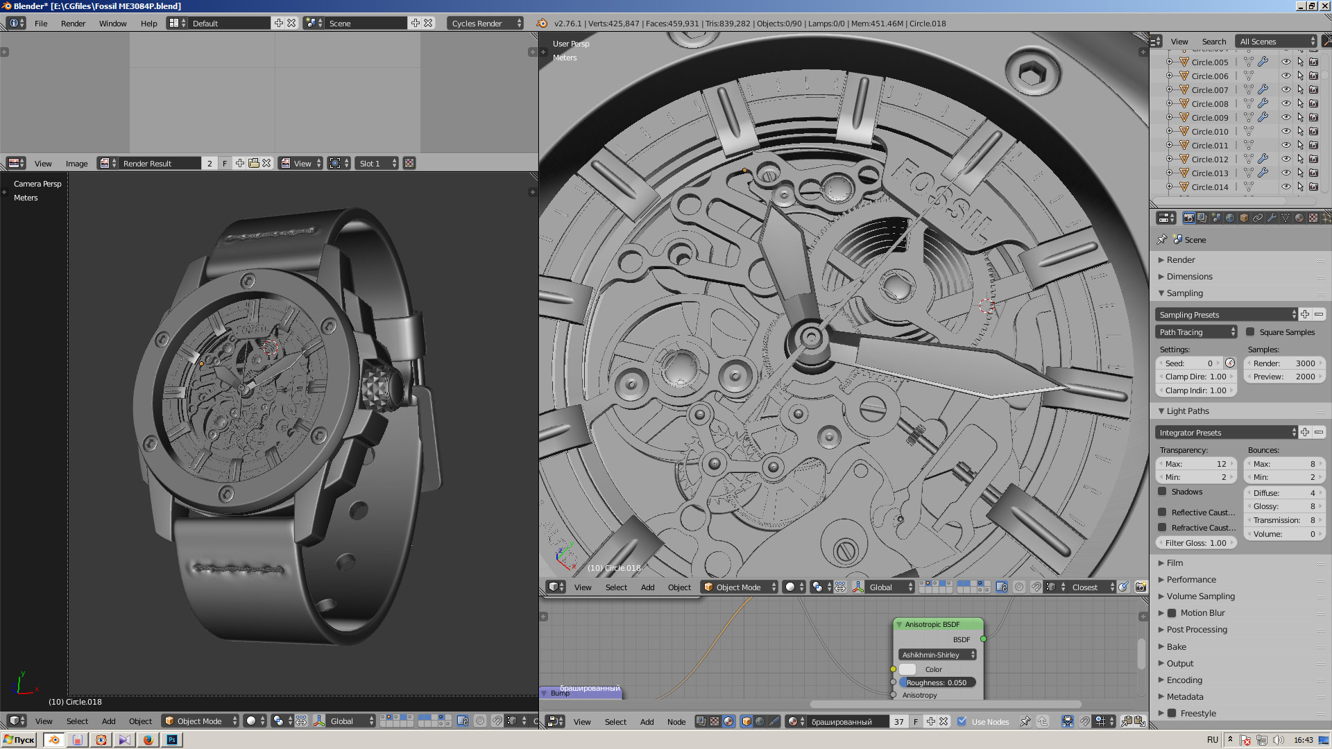 Работа делалась для себя, заняла 2 дня. Мне было интересно, что можно сделать с помощью булевых операций и модификатора фасок.