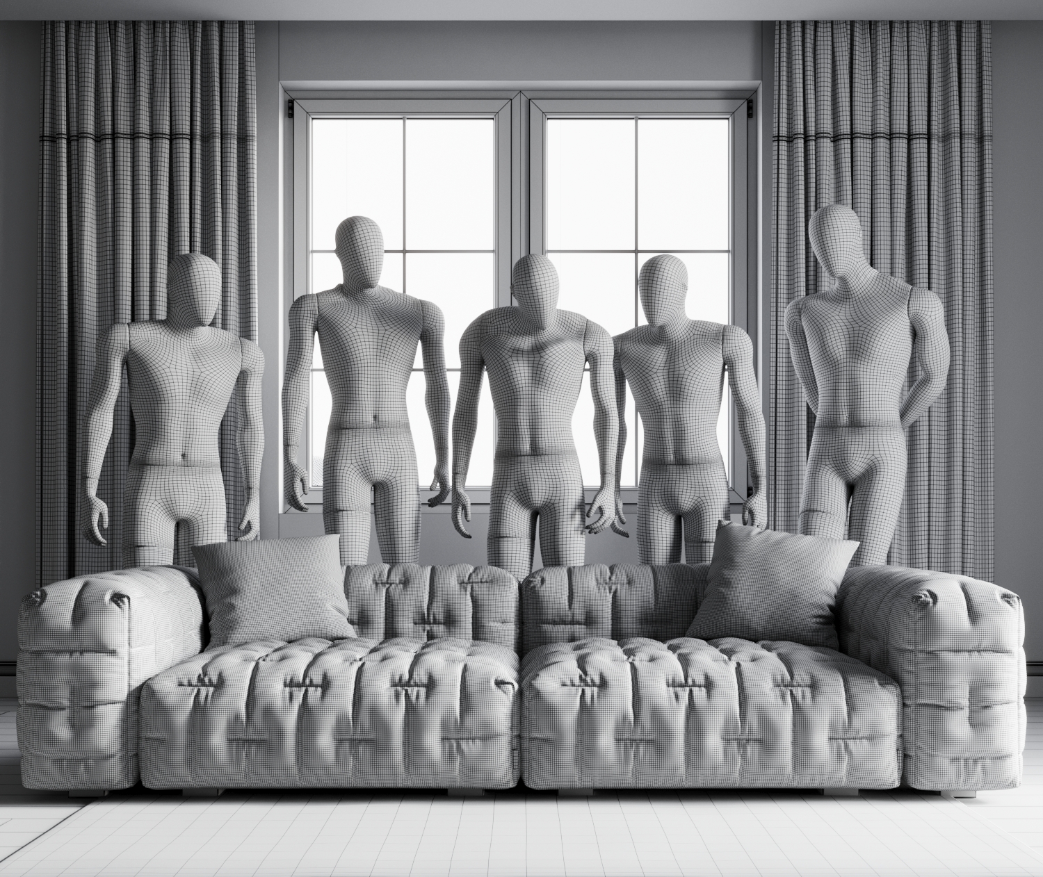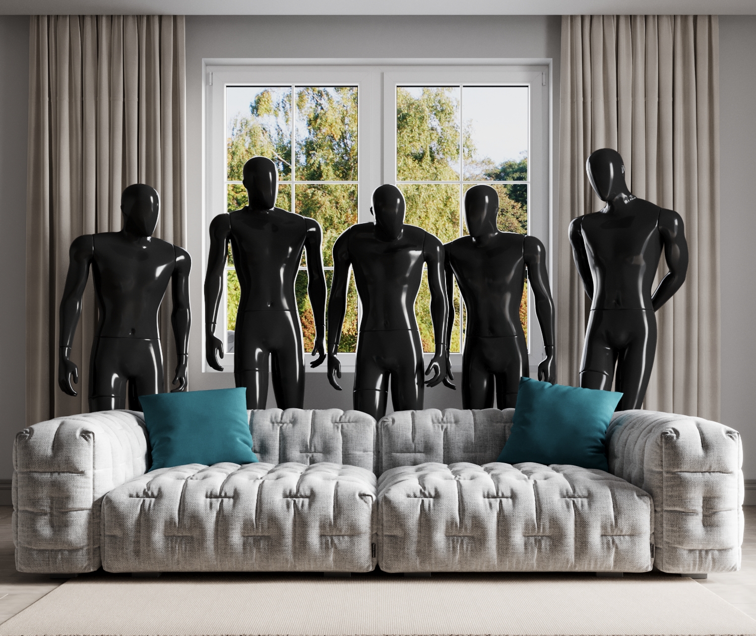 на изображении манекены восторженно смотрят на диван, восхищаясь его прочностью и красотой, желая его купить, BOCA ROOM свяжитесь со мной). Мне стыдно за твои фантазии