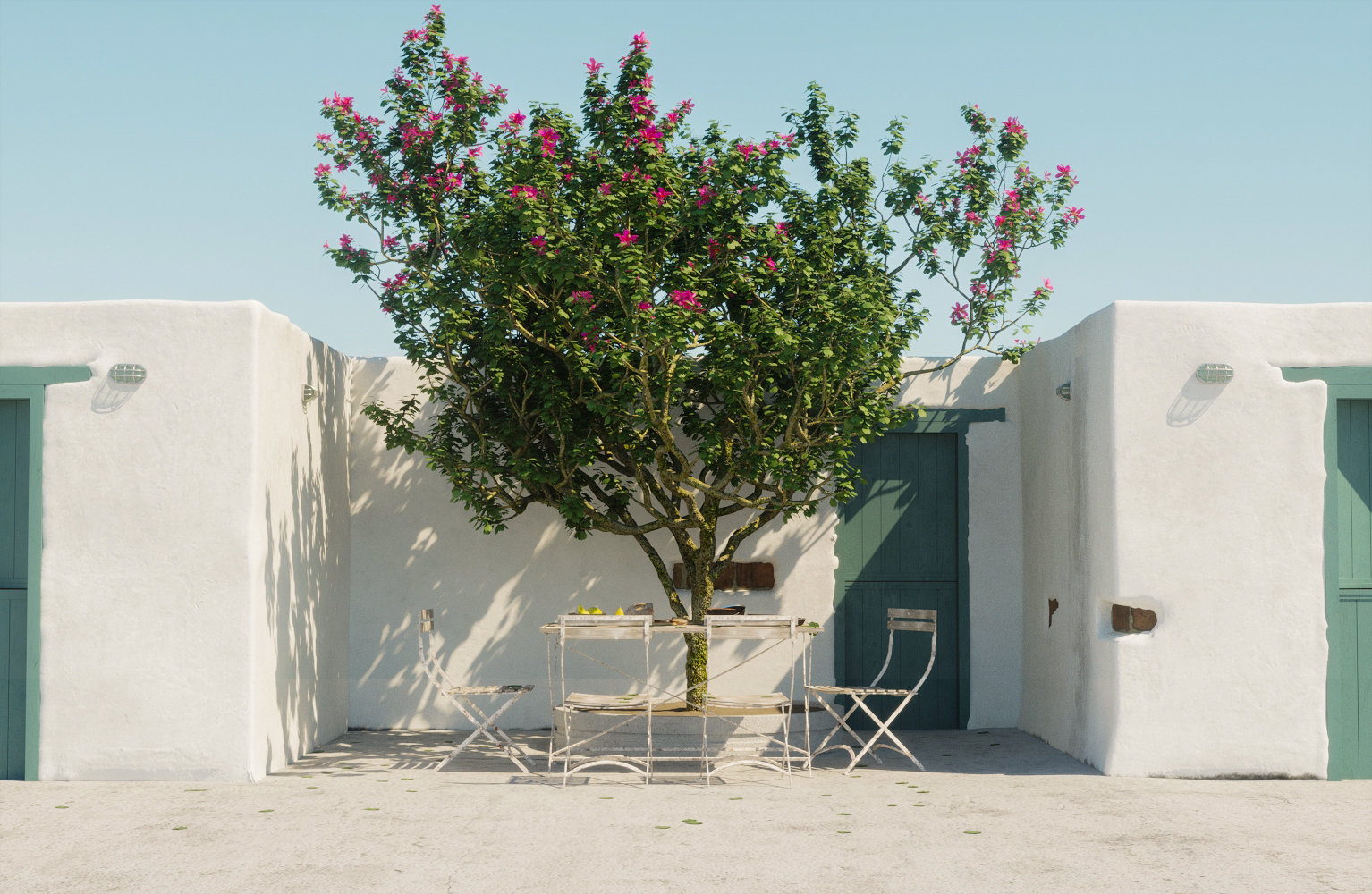 Так же не совсем удачно сымитирован "врез" дерева в постройки, добавить более красивого неба(сделать насыщенней).