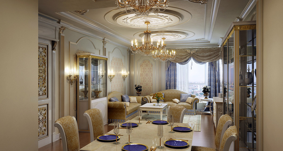 Капители не внятные совсем..не понятно как они там приделаны.По дизу. на мой взгляд с люстрами перебор.