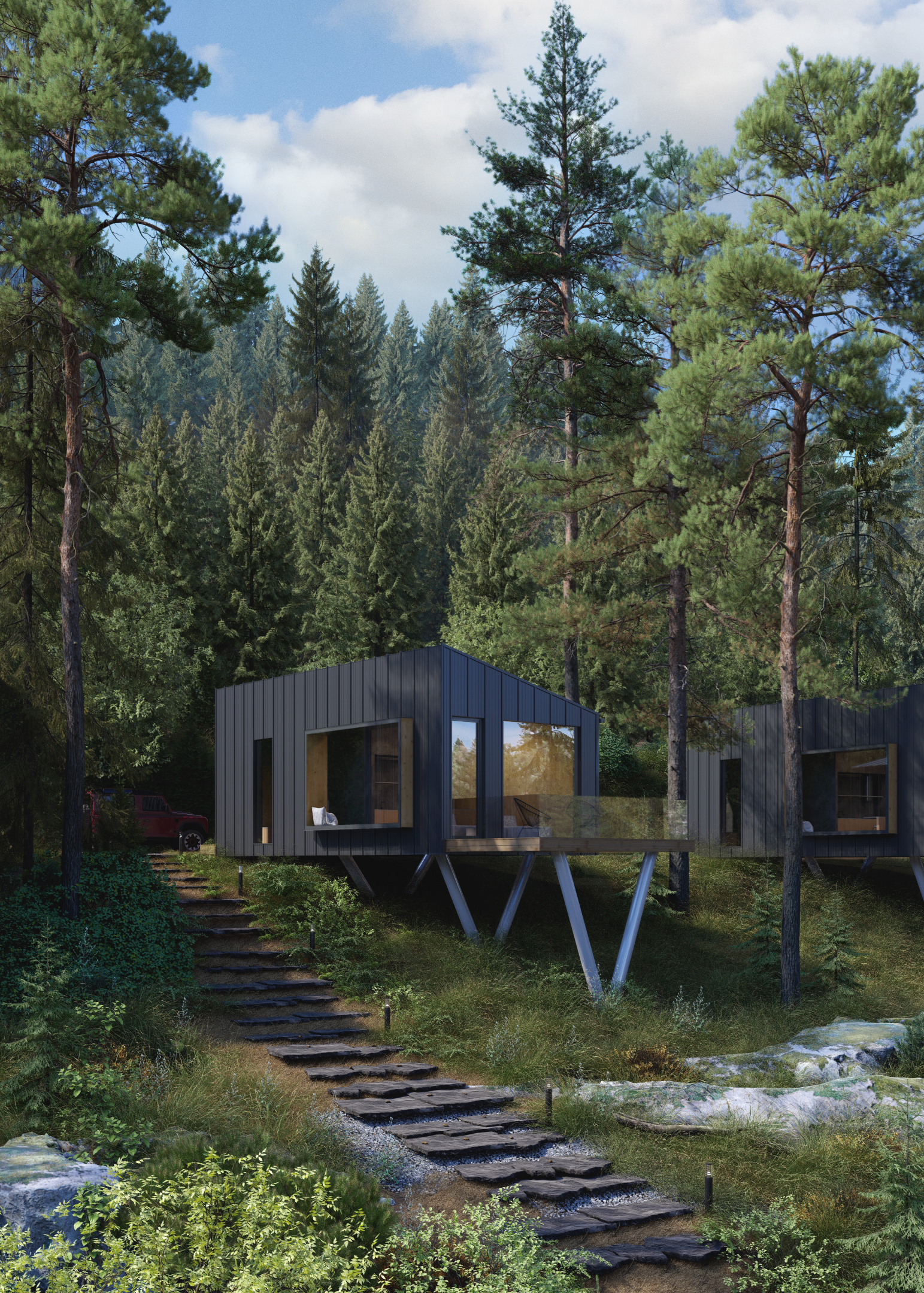 glamping Визуализация проекта глэмпинга на горном склоне Visual: Anastasia Kosyreva 2025 Soft: lumion12, archicad Behance: