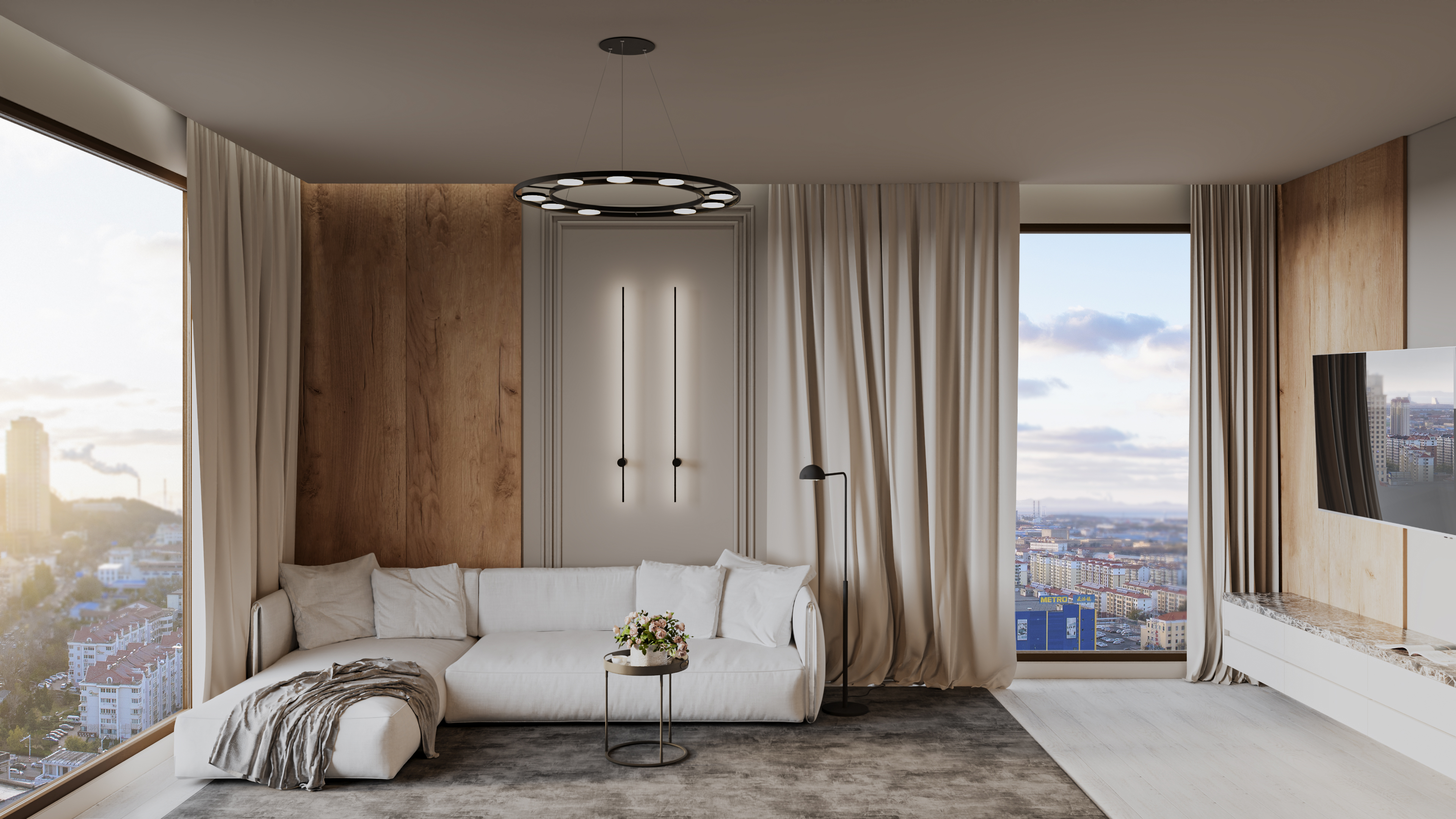 Гостиная в нейтральных тонах