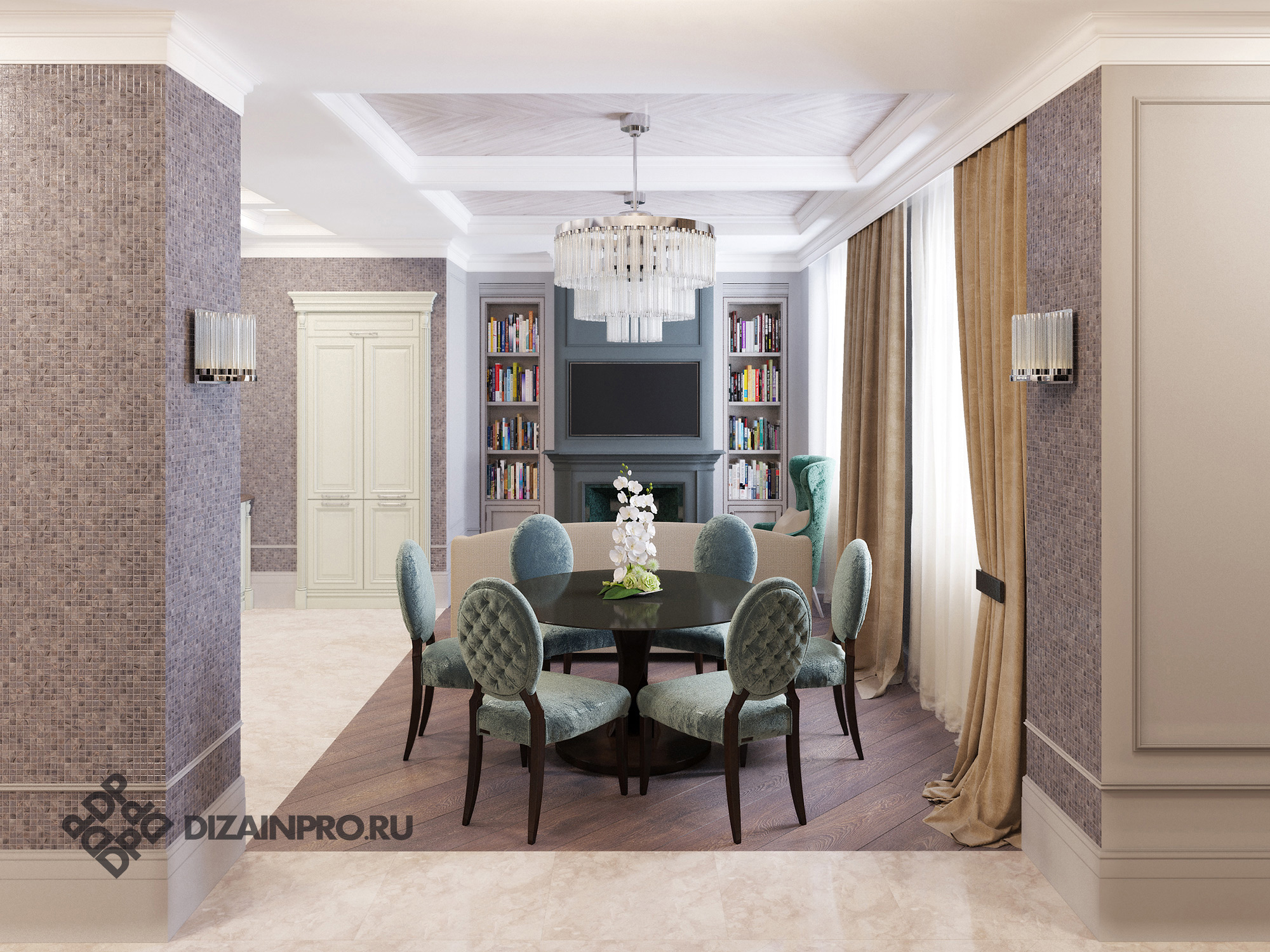 Мне нравится цветовая гамма и общая композиция, но не нравится - мозаика в таком количестве, вытяжка, дверные ручки и люстры на штангах.