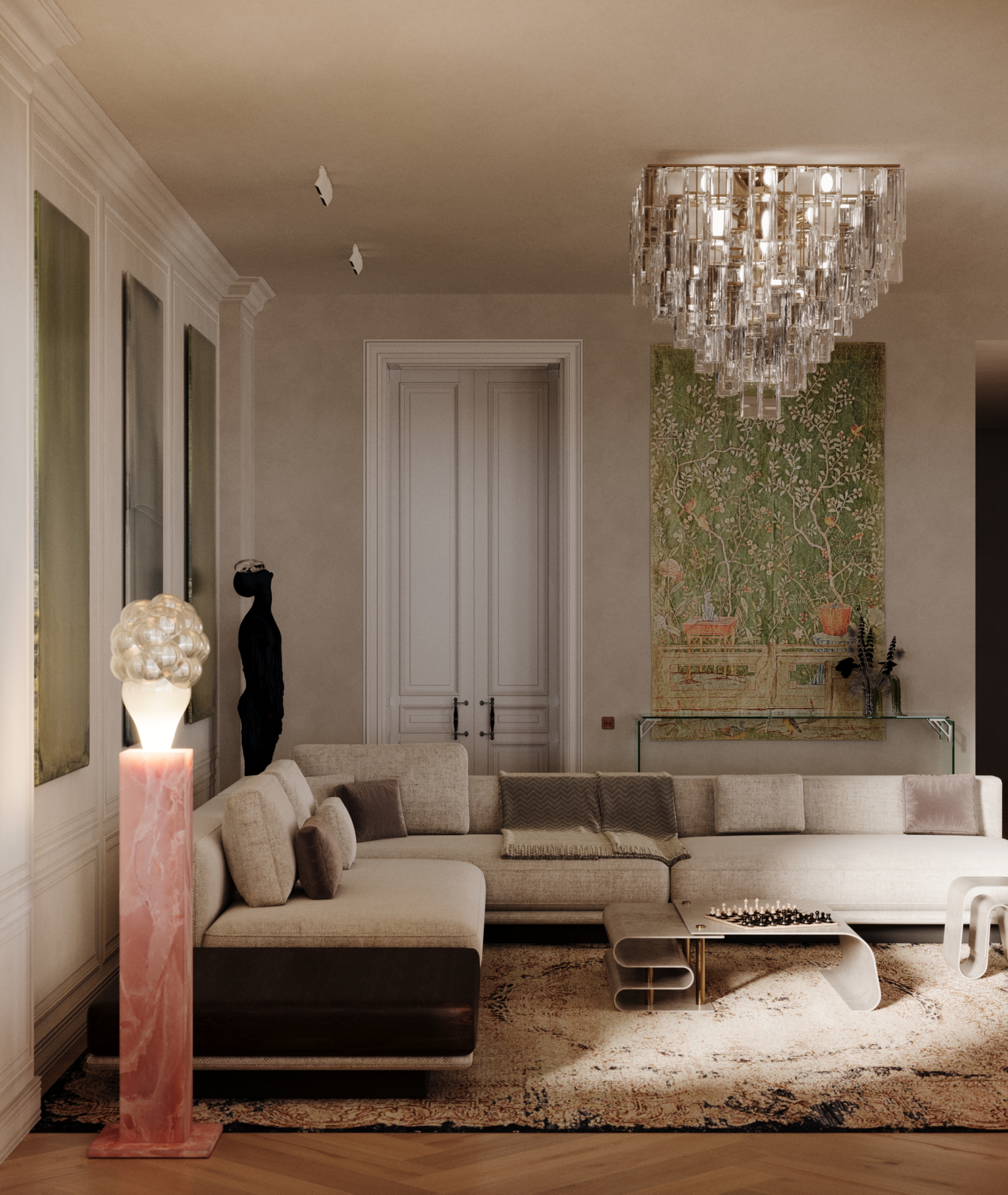 Гостиная в классическом стиле с акцентом на предметы искусства