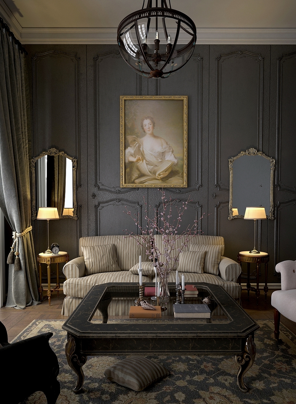 А если серьезно картина и зеркала не бьется с молдингами и спорят.
