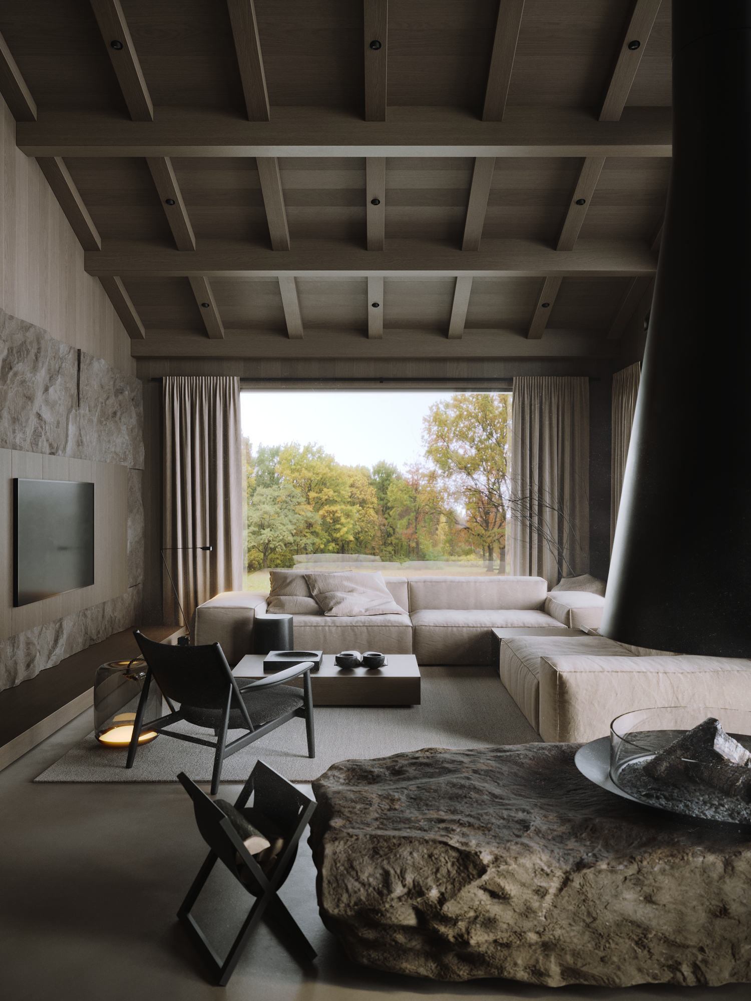 Дизайн и визуализация загородного дома. Задачей было привнести нотки шале в современную концепцию интерьера. Остальные помещения можно посмотреть на Be