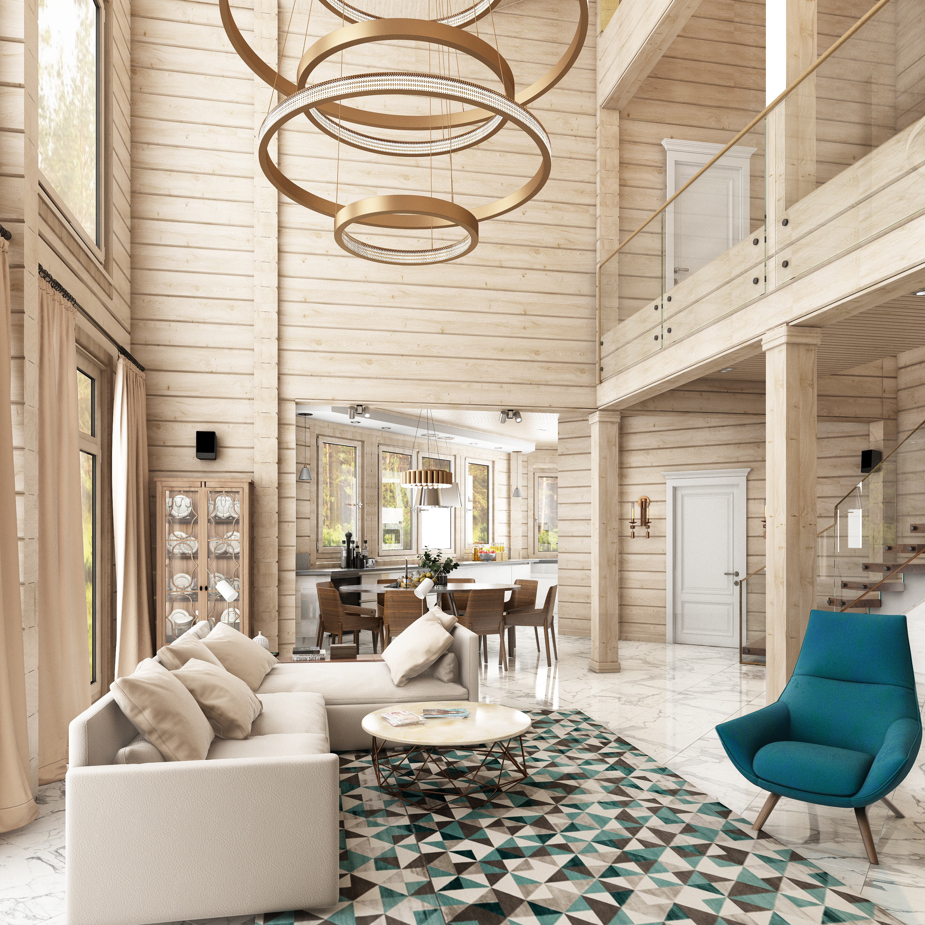 Гостиная со вторым светом в загородном доме, 3D MAX, Vray