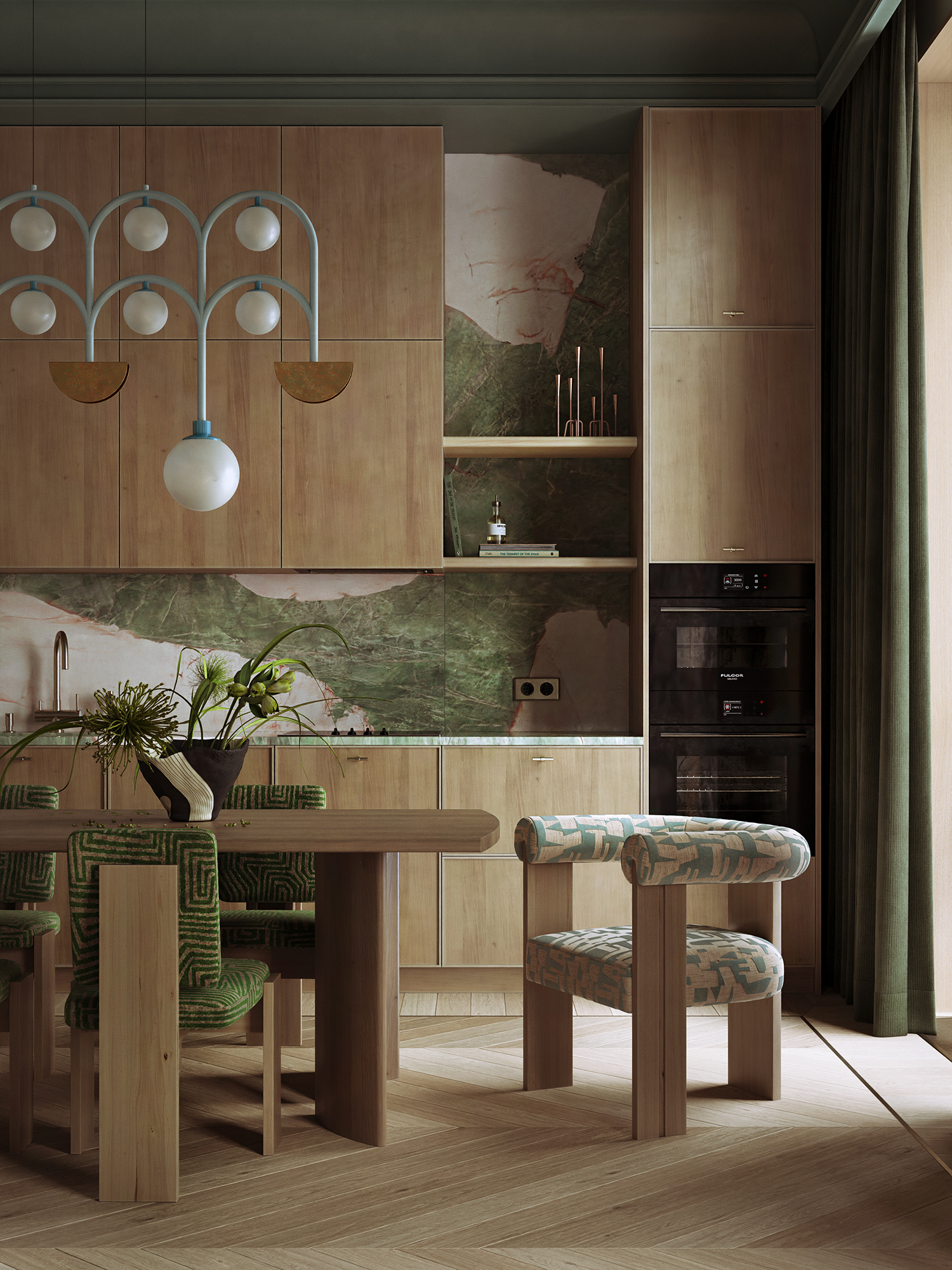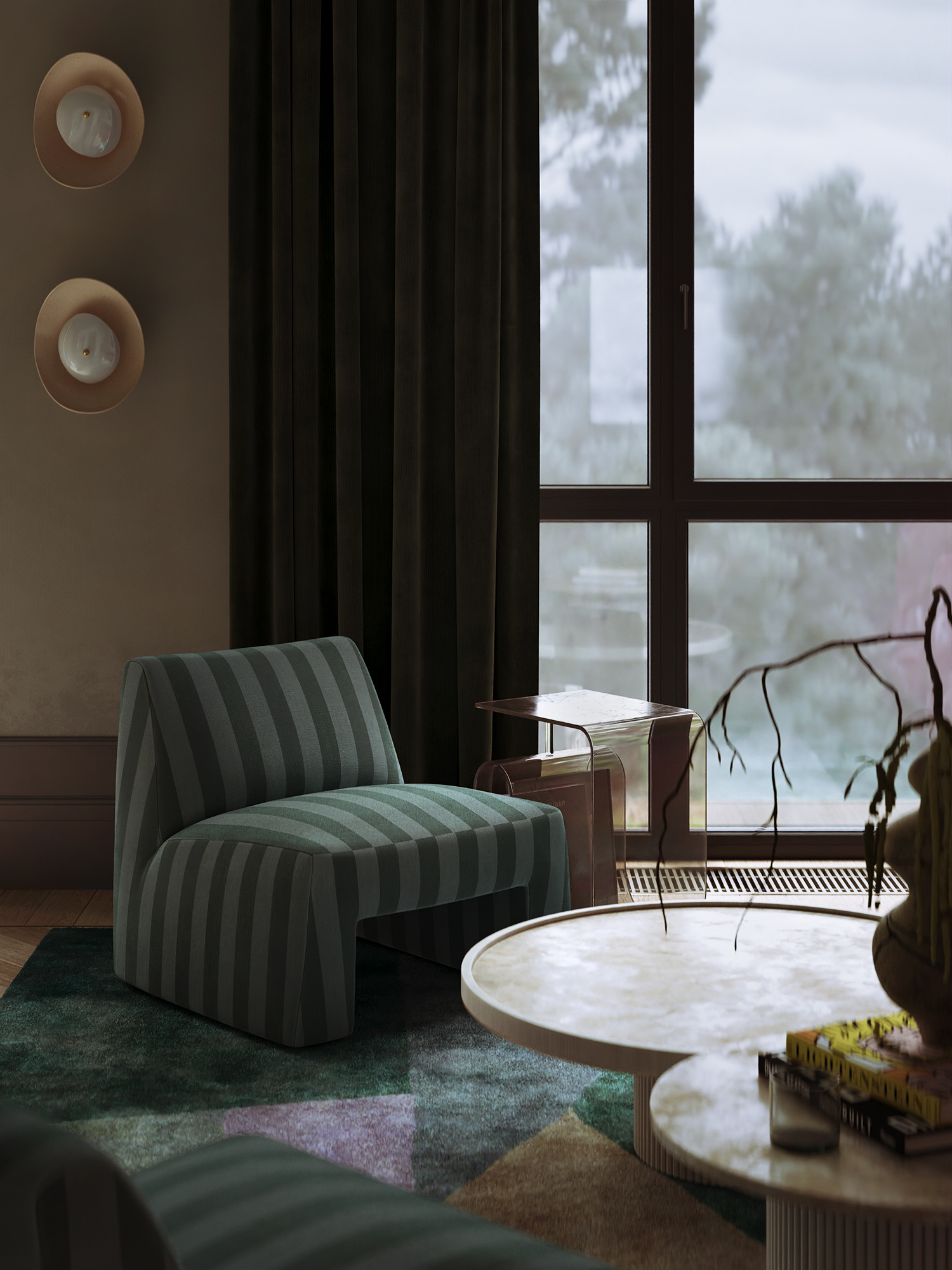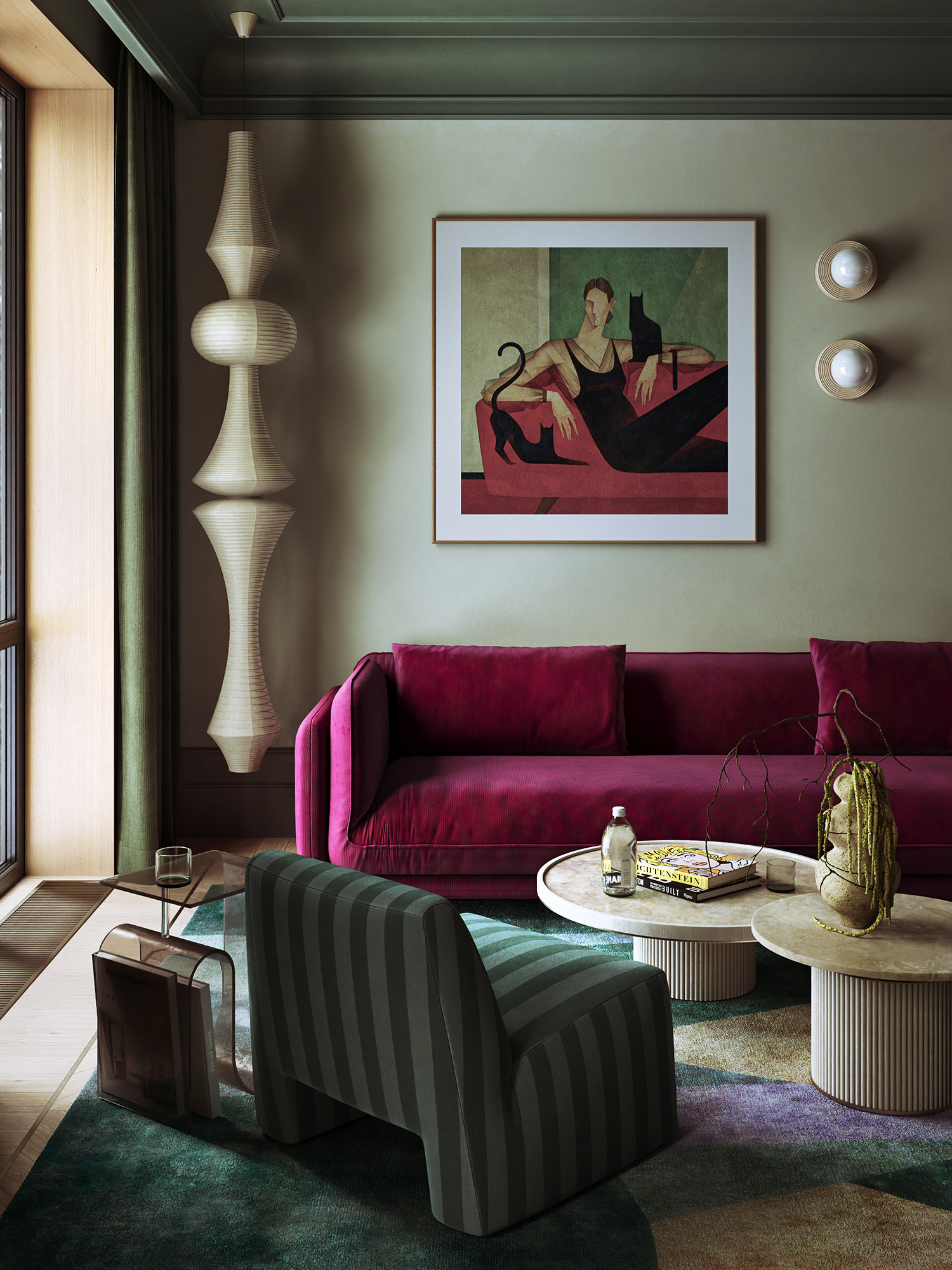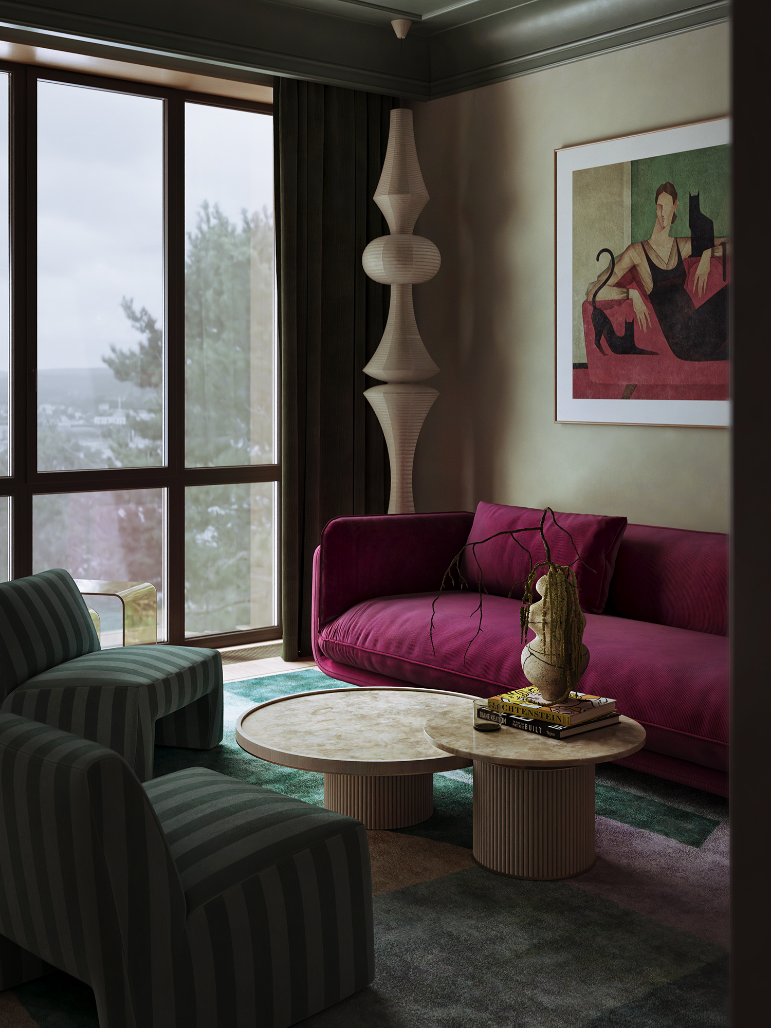 Для такой работы я не пожалел бы эпитета "потрясающая", ибо она полностью удовлетворяет моим вкусовым предпочтениям в плане цветового решения, форм и общего настроения интерьера. Сама картинка, то есть визуализация, на очень хорошем уровне как в части материалов, так в части композиции кадра, света и фотоэффектов. Это верный претендент на гору. Автору уважение и пожелания творческих успехов.