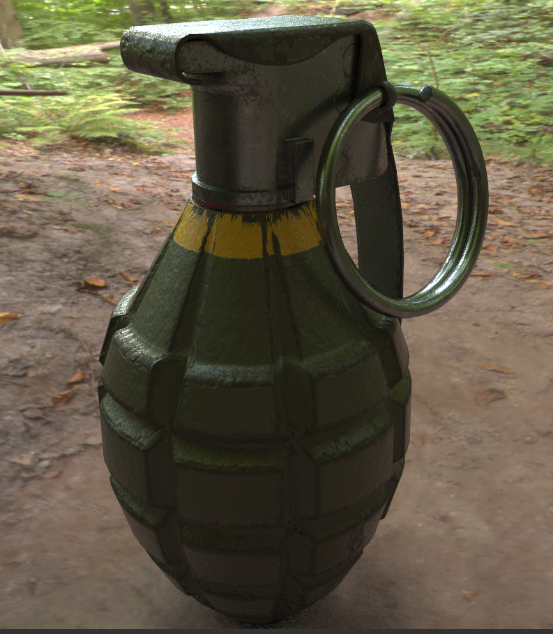 Гранатка сделана самостоятельно , после просмотра ряда обучающего видео по моделированию (low-poly , hi-poly) , запеканию карт и визуализации с помощью Substance Painter