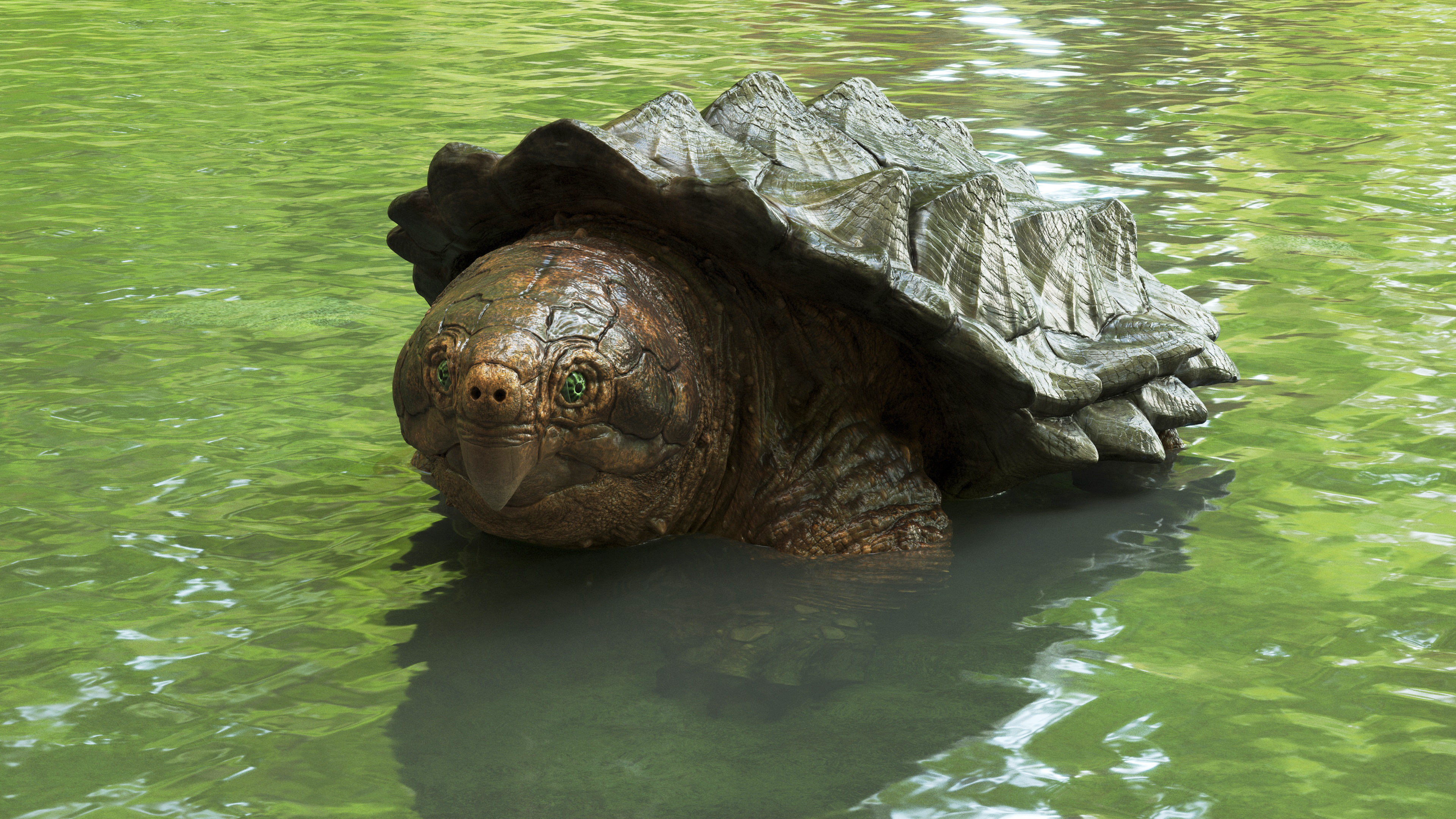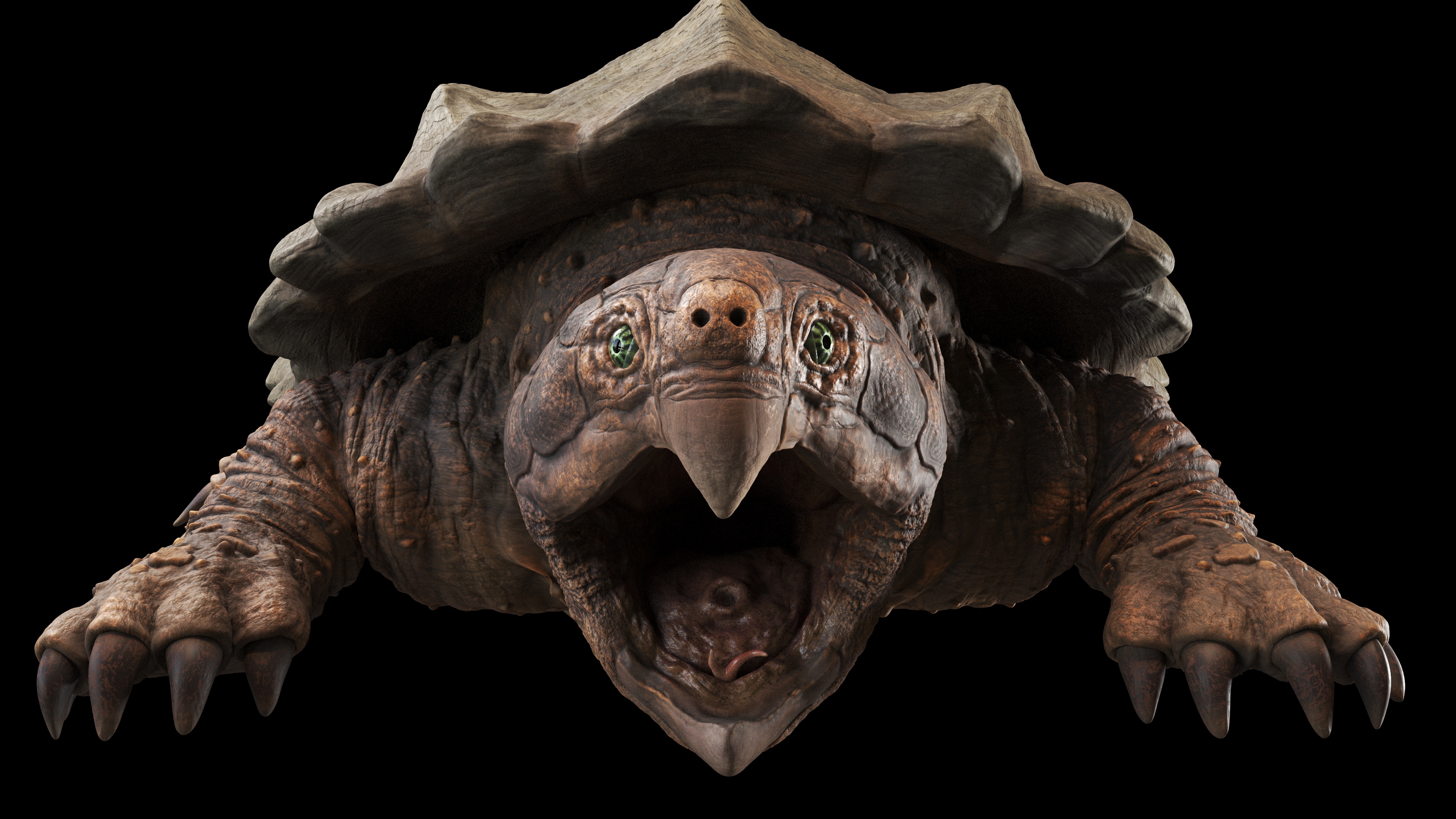 Грифовая черепаха, или аллигаторовая черепаха (лат. Macroclemys temminckii). Своё название получила из-за чрезвычайно мощных челюстей и выступов на панцире, похожих на грубую, ребристую кожу аллигатора