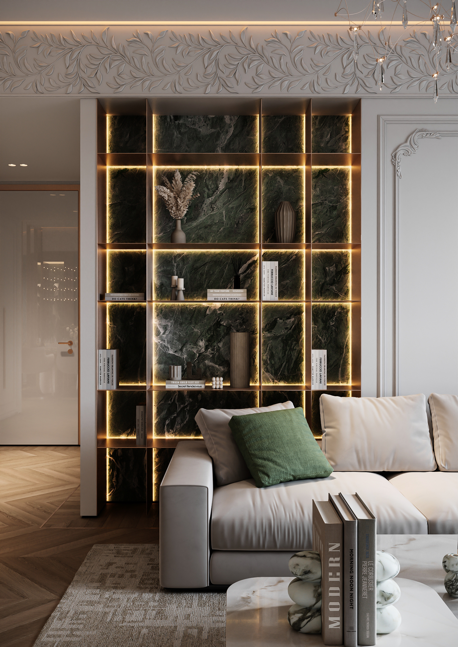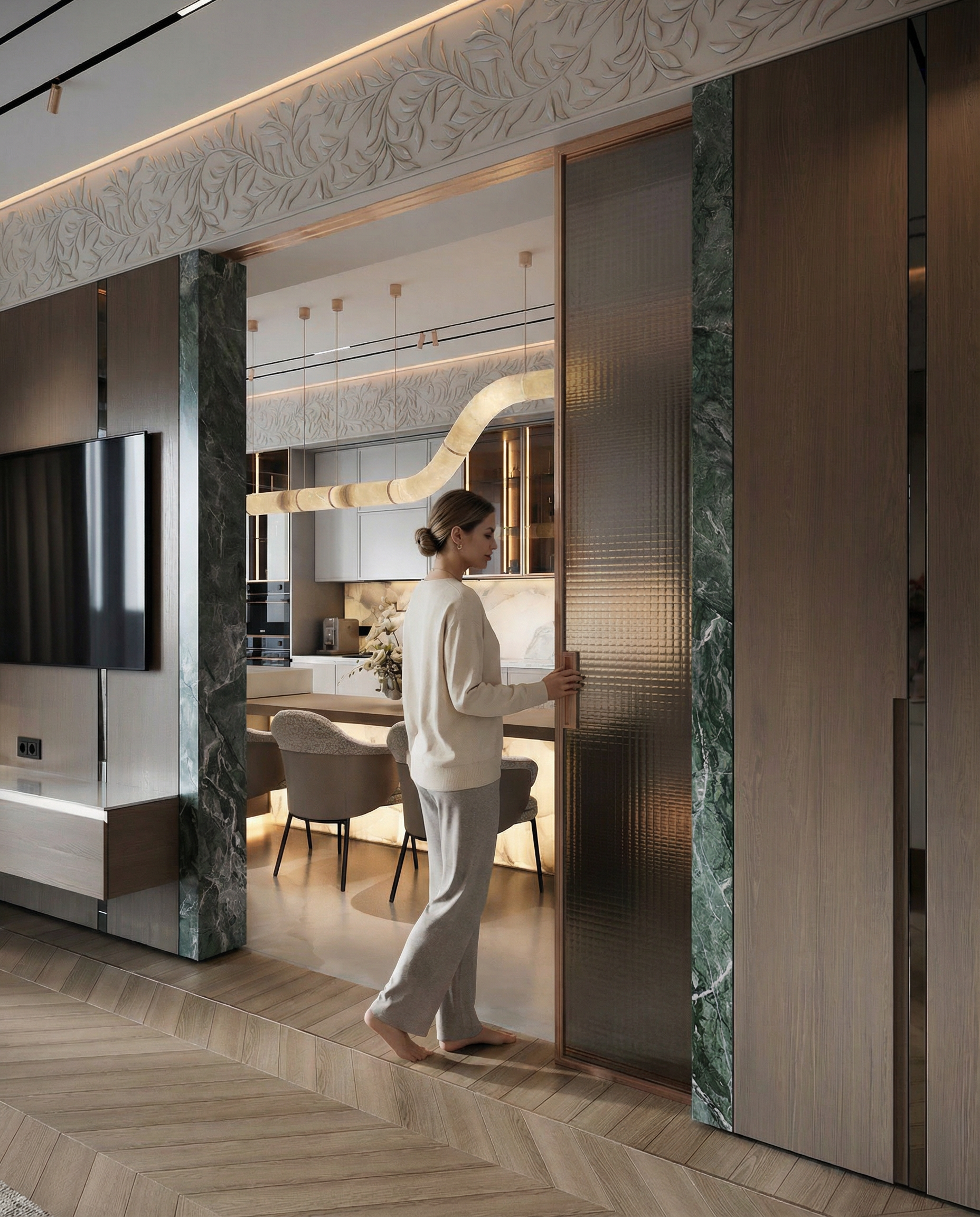 Мои дизы даже для коммерческих проектов говорят не ставить людей, никаких, что уж говорить про жилые помещения. Я смотрю всем нравится картинка, несмотря на то, что логики в ней мало.