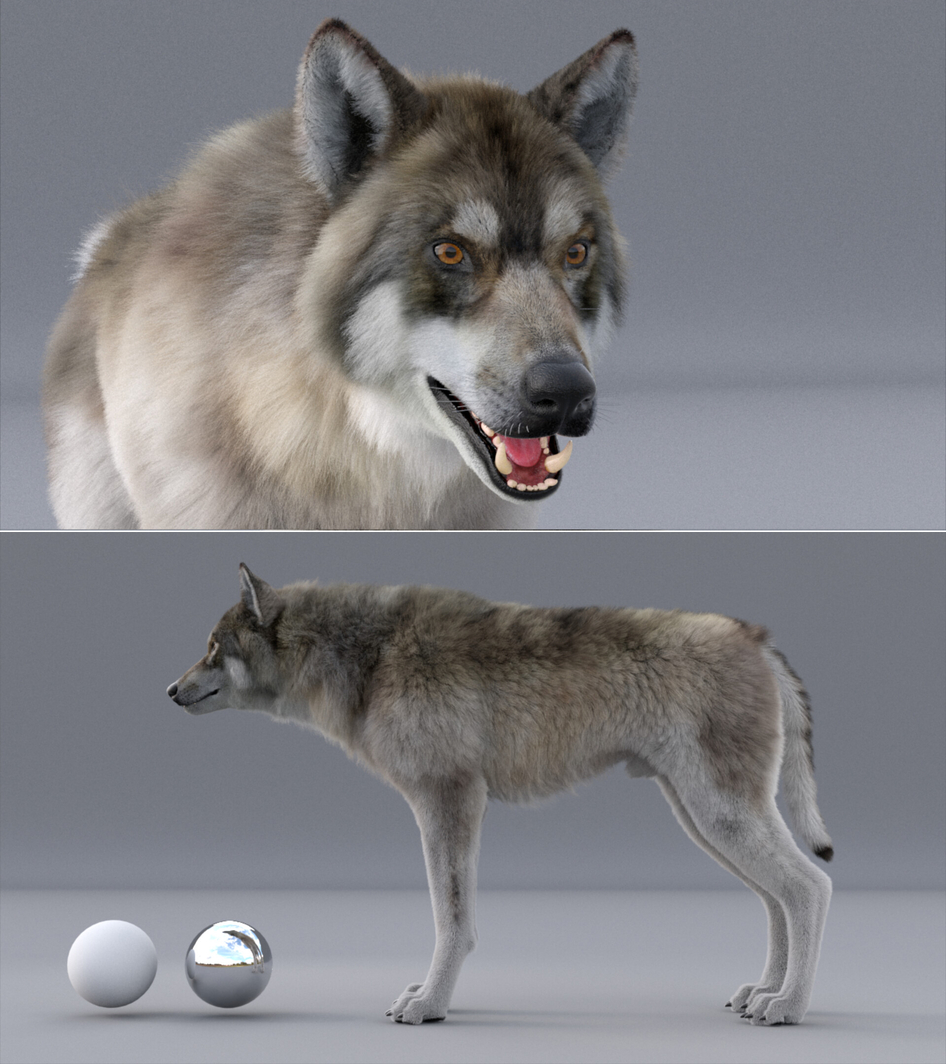 High detail and realistic Wolf model. V-ray 3.6 renderer UVunwrapped and smoothable, made with Maya. YETI 2.2 version for hair and fur