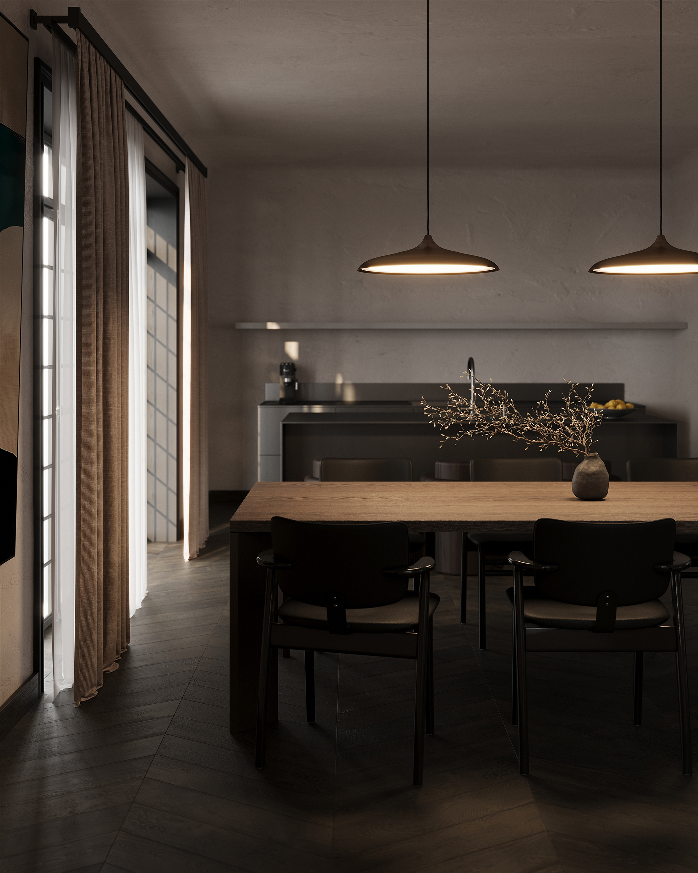 Every space reveals a balance between warmth and restraint: layered materials, diffused daylight, and the rhythm of crafted imperfection.