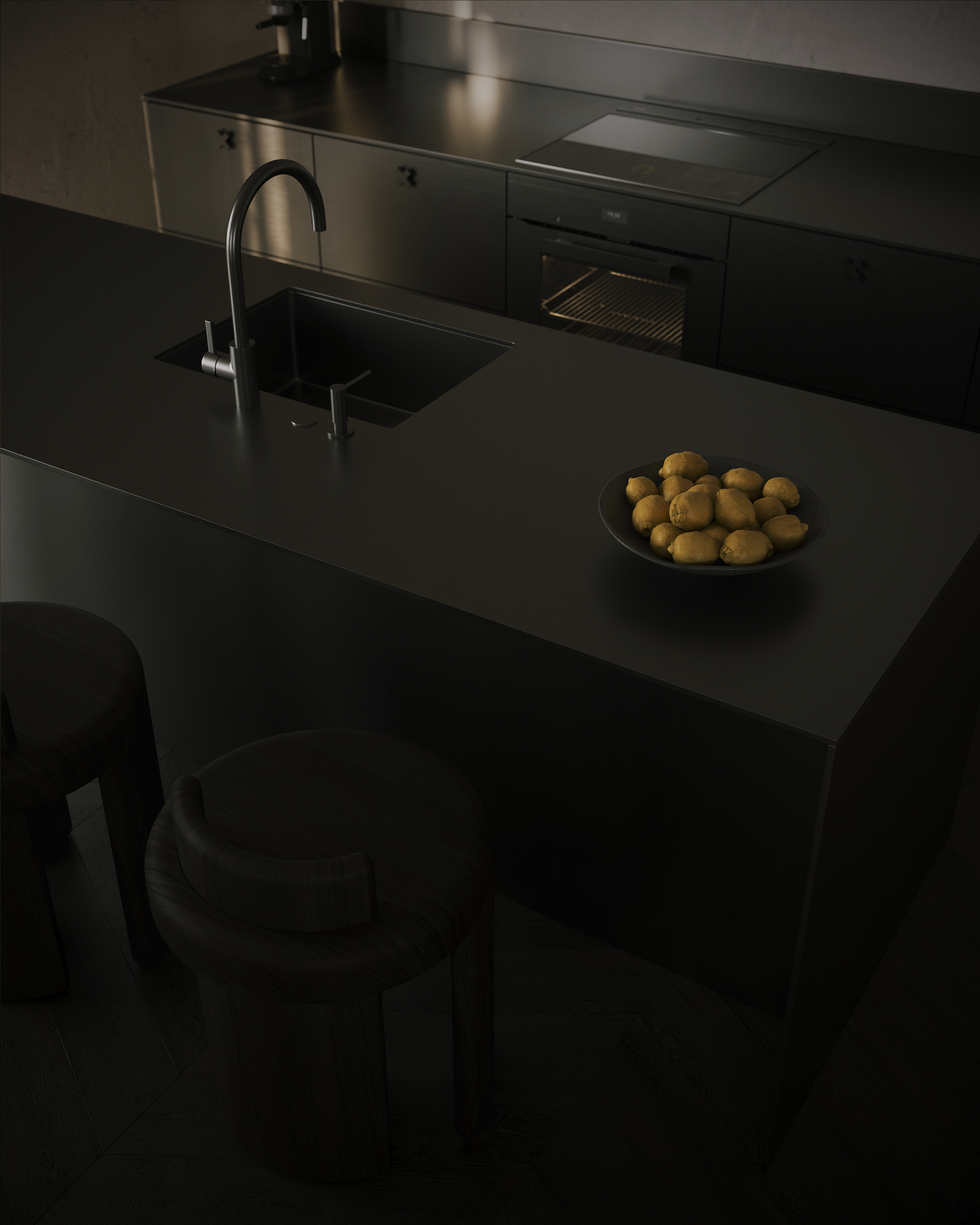 An intimate residence where calm minimalism meets expressive detail - sculpted forms, deep textures, and a quiet palette of stone, linen, and wood.