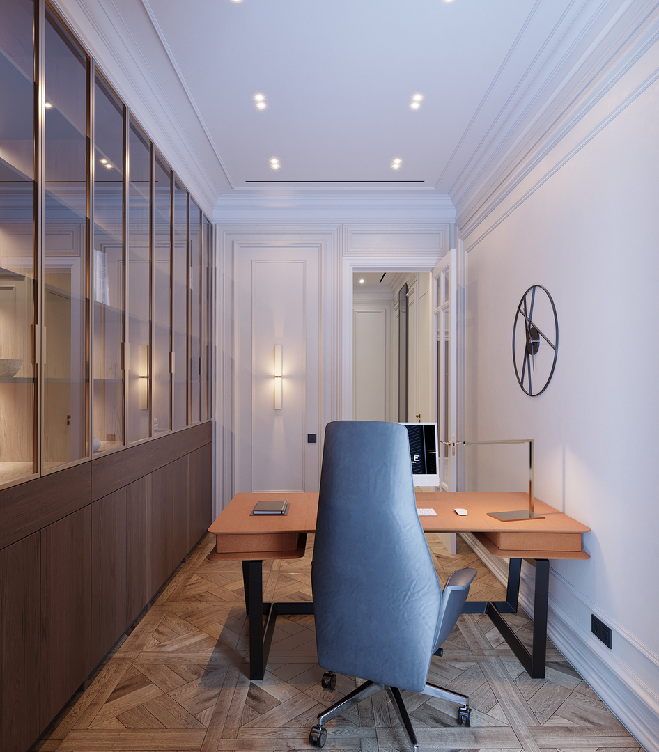HOME CABINET Design: Imagine Company CG Artist: Mukhammad Azim Location: Tashkent, Uzbekistan Neoclassic home cabinet