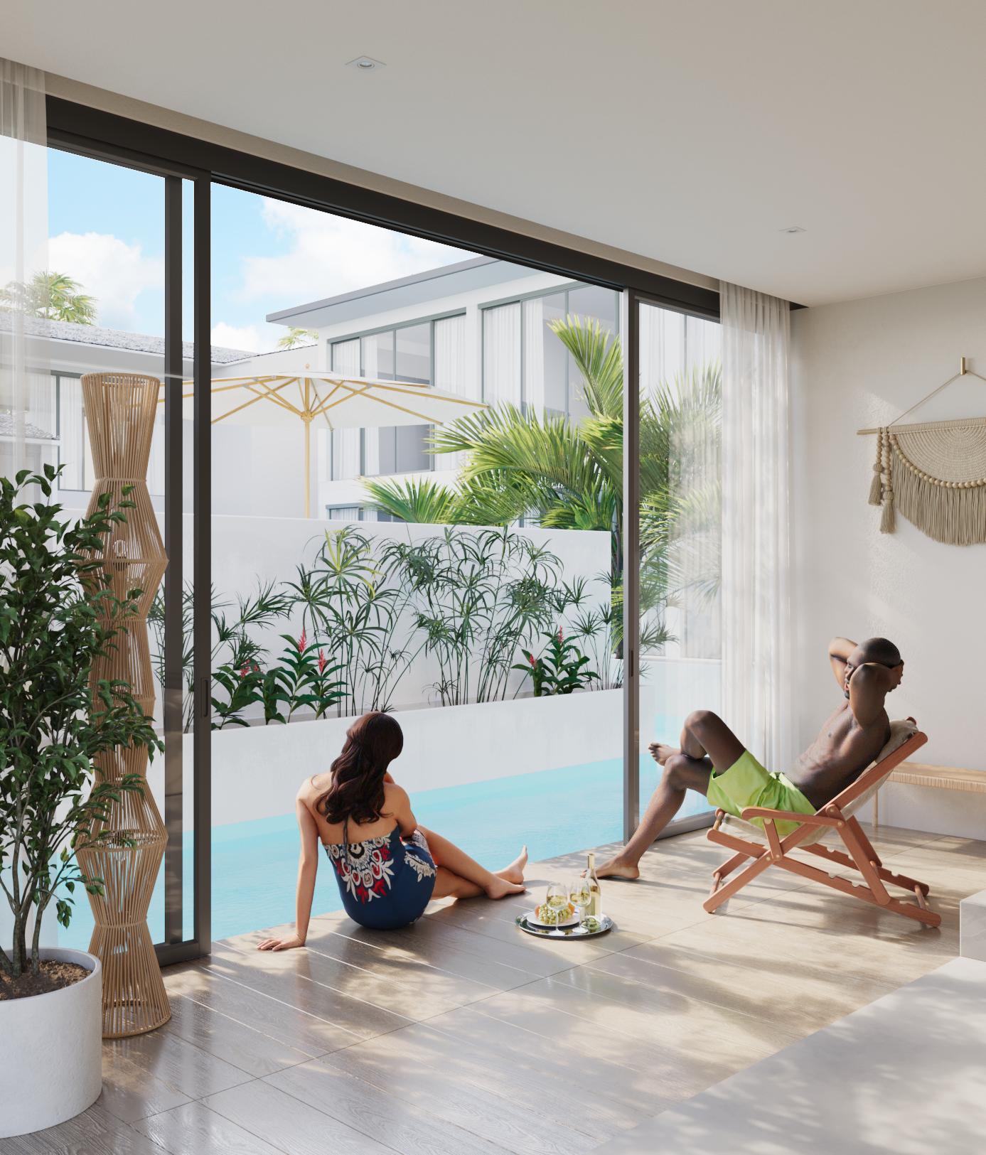 Два человека, источники освещения, отделочные материалы, мебель
