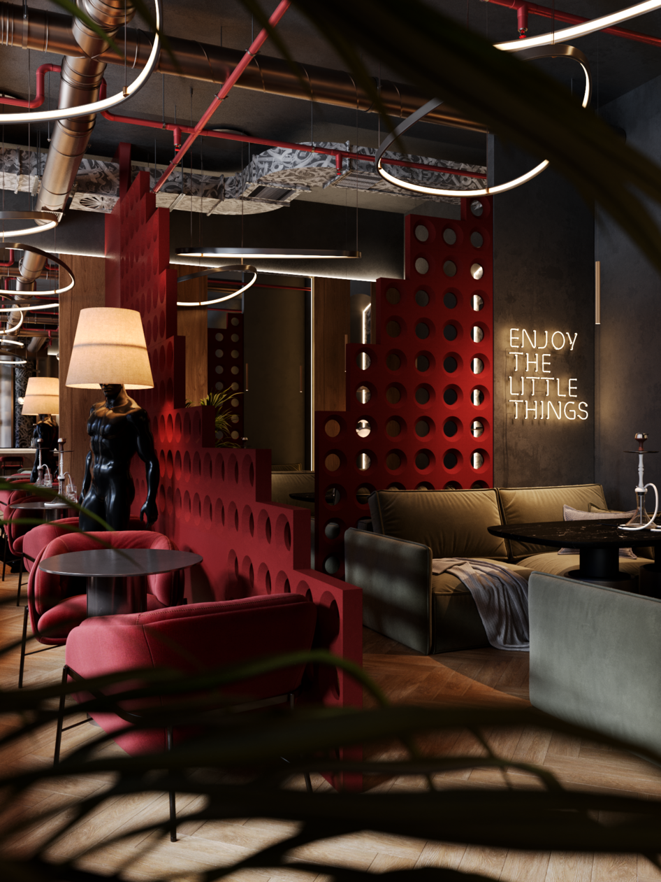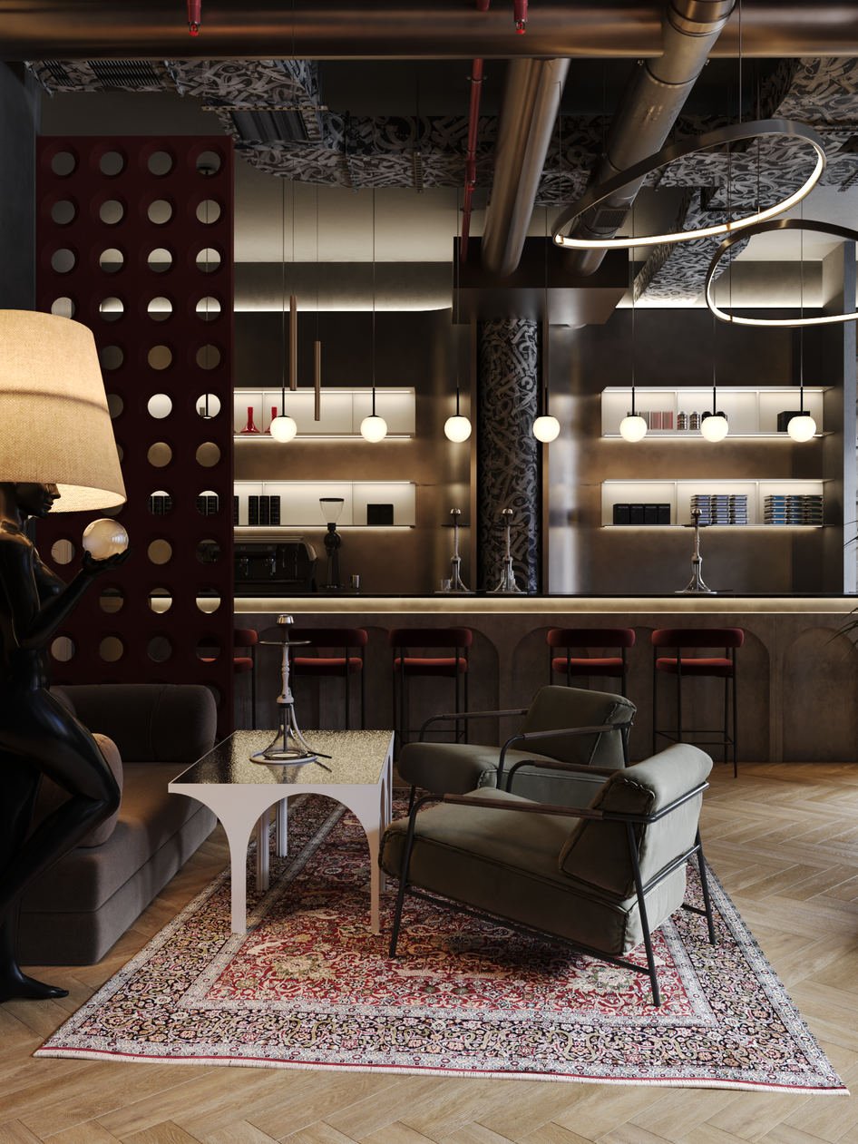HOOKAH BAR with art objects Software: 3Ds max | Corona renderer Design & Vizualization | Ariadna Onasch More works |