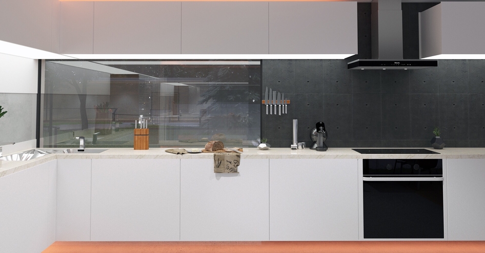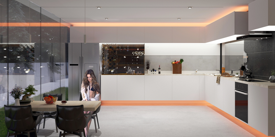 Стол, стулья и девочка явно маленькие, не в пропорциях с кухней. Виз приятный.