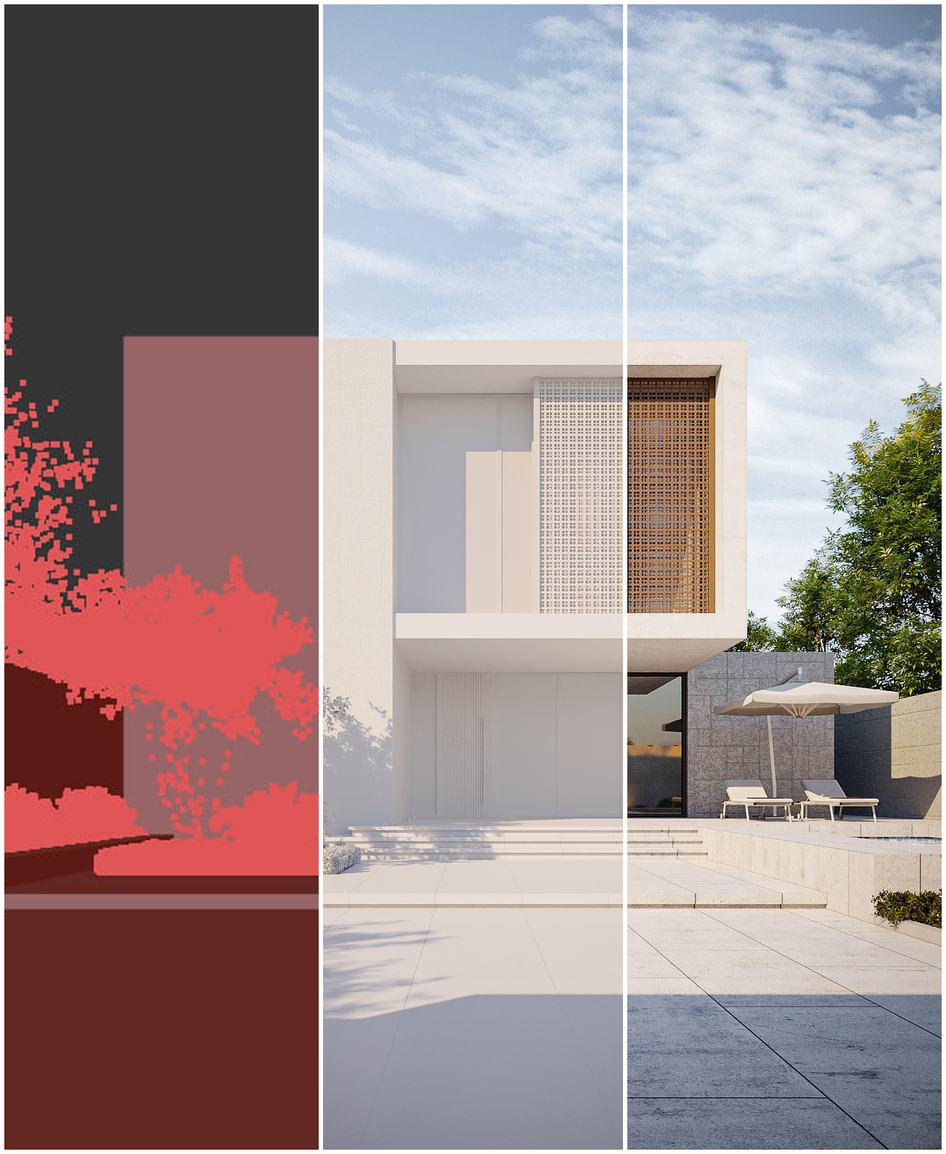 exterior, architecture, house, 3dsmax, corona, photoshop reference:
