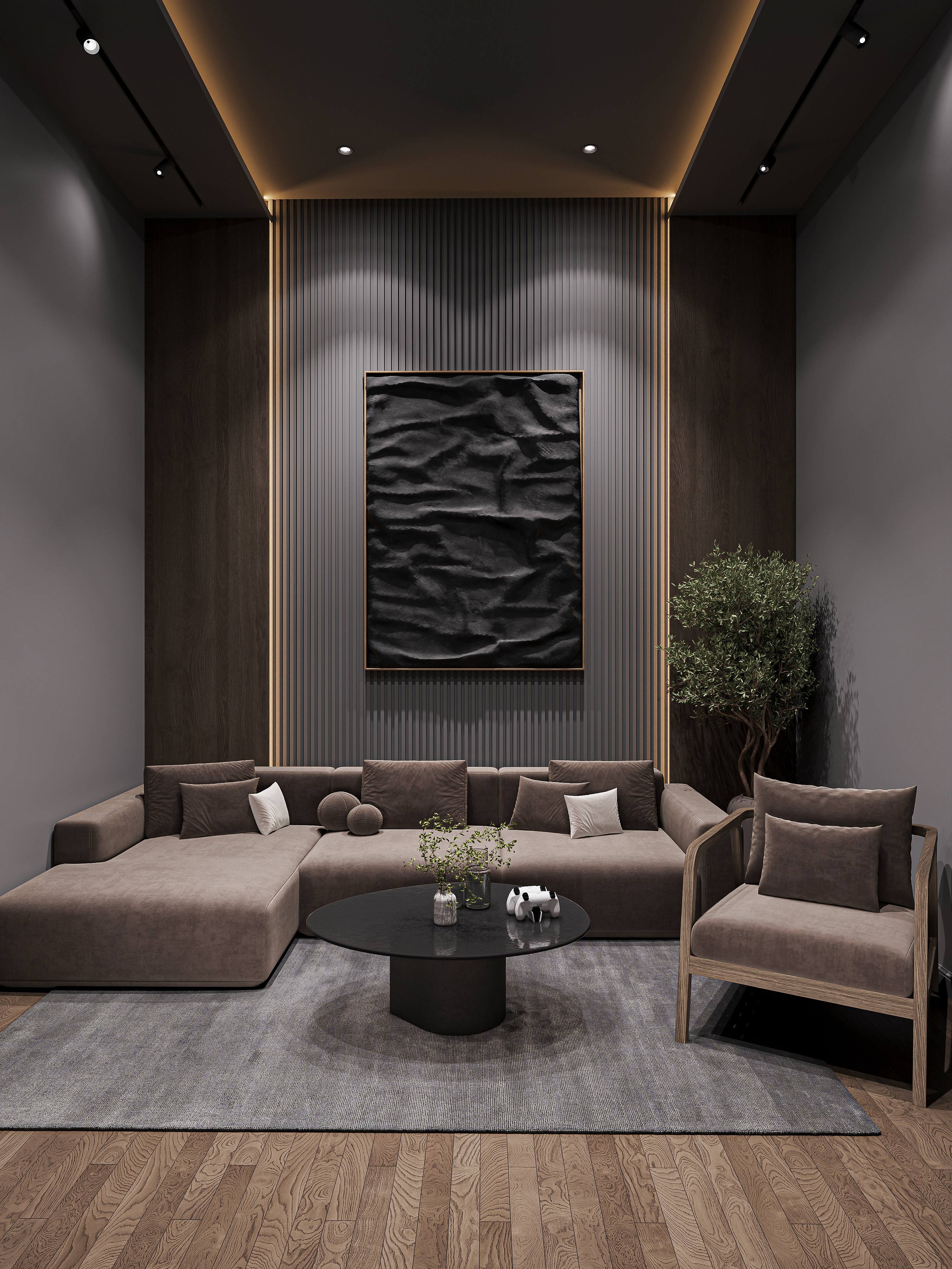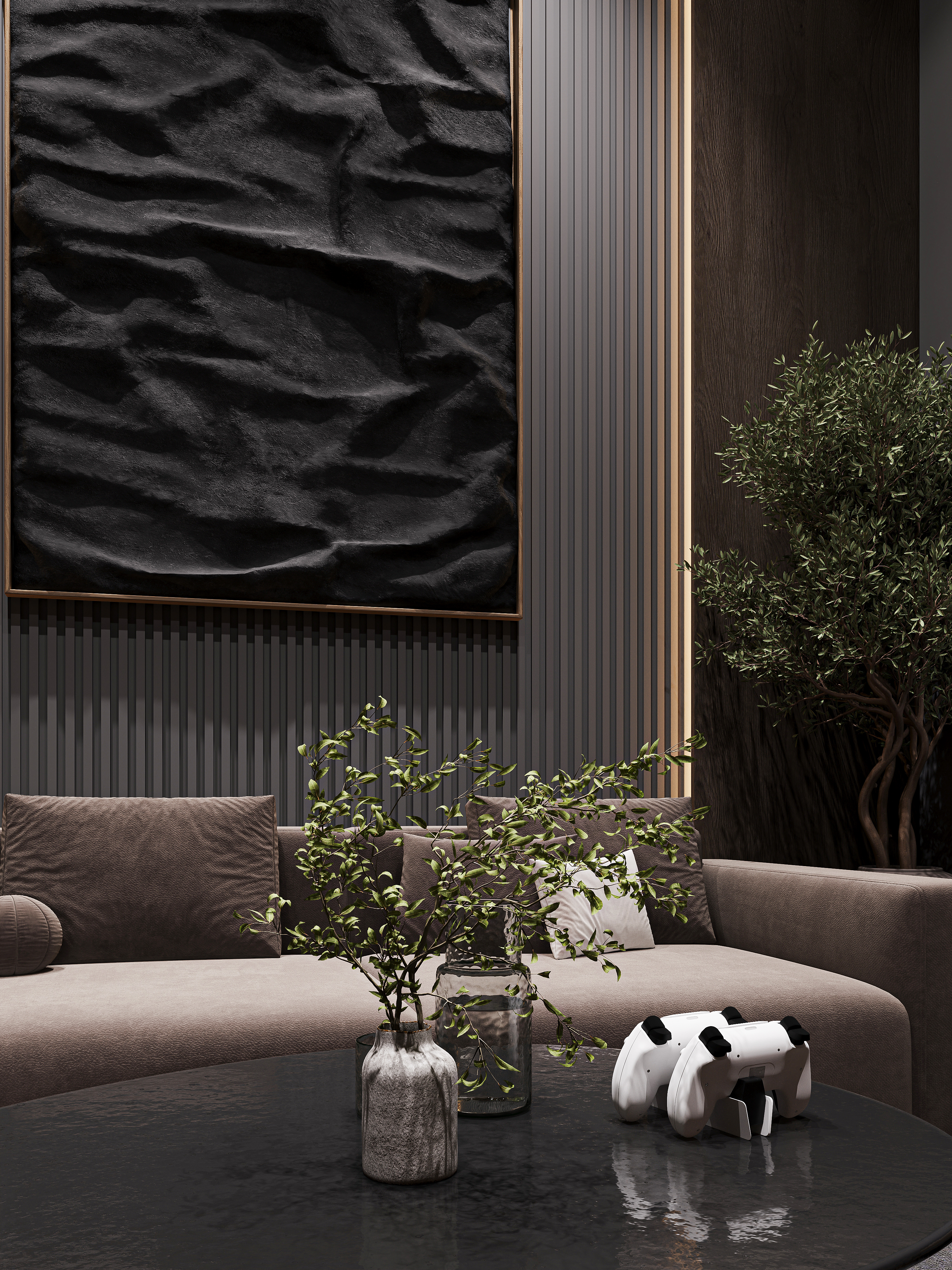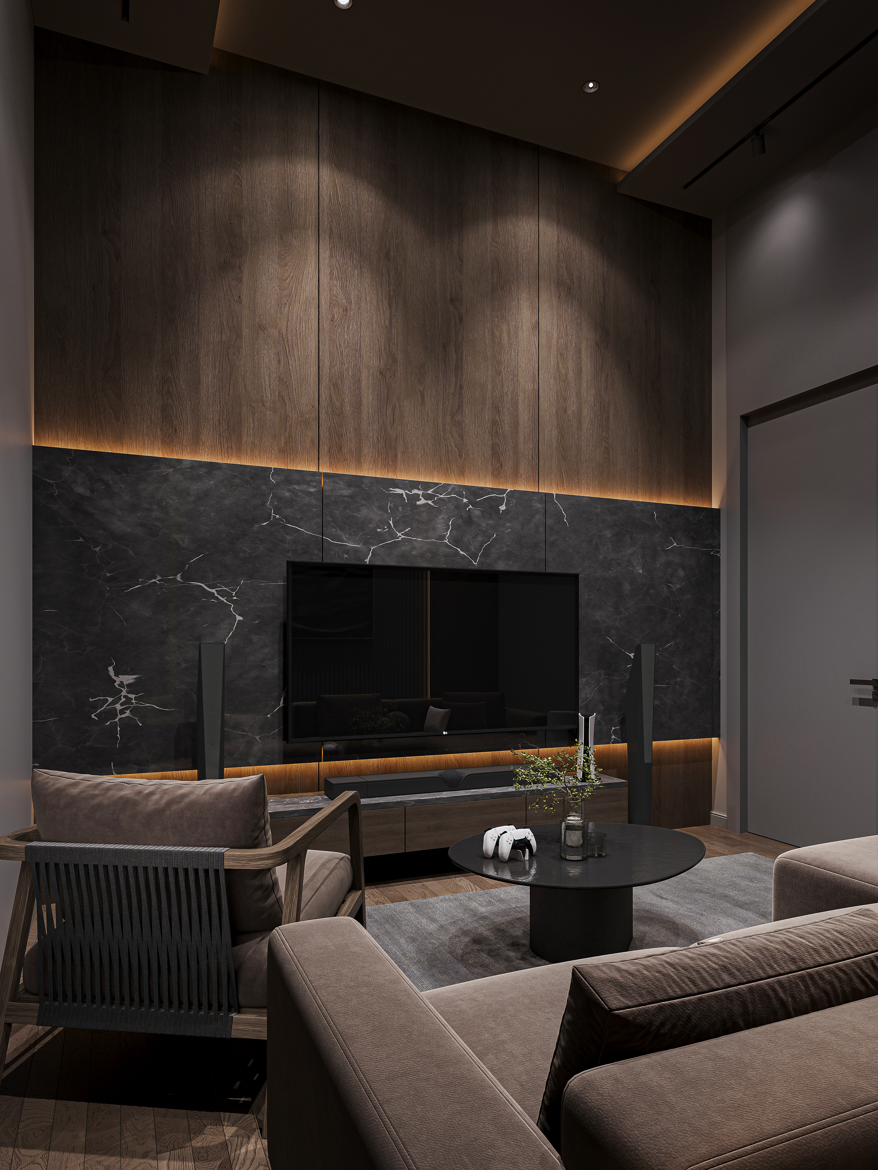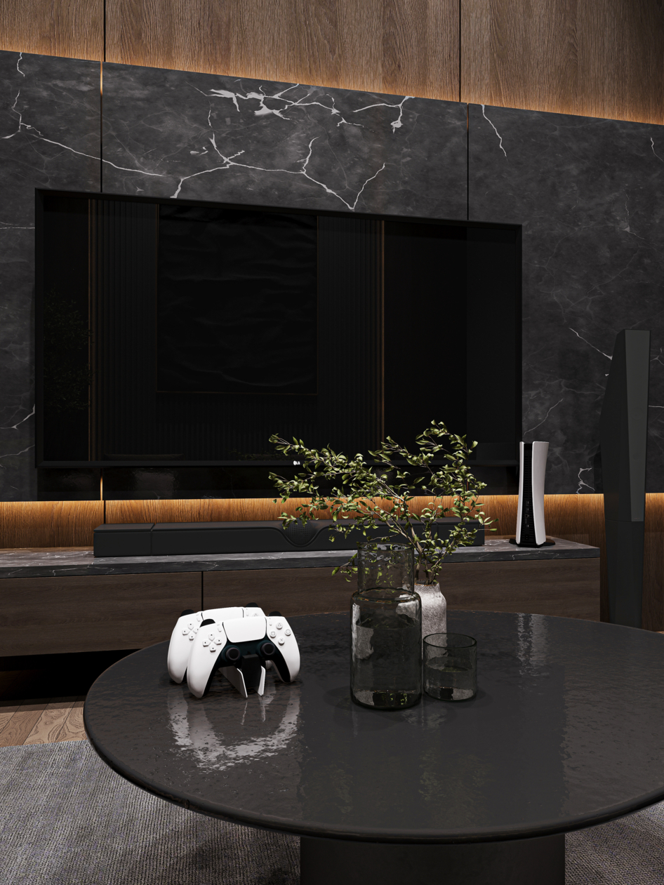 Эта игровая комната выполнена в современном интерьере с использованием черного цвета и выводит ваш игровой опыт на новый уровень. Черные акценты делают стиль комнаты еще более привлекательным, а мягкое освещение создает уютную и загадочную атмосферу. Каждая деталь, отделка стен и расположение мебели продуманы для максимального погружения во время игры.