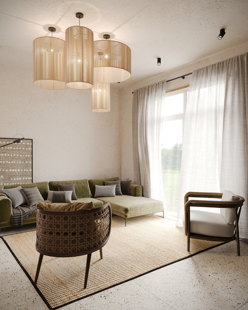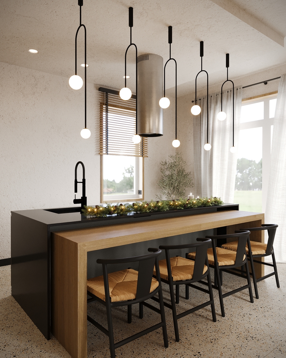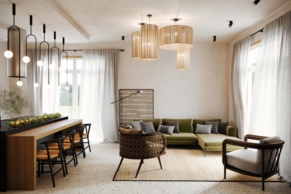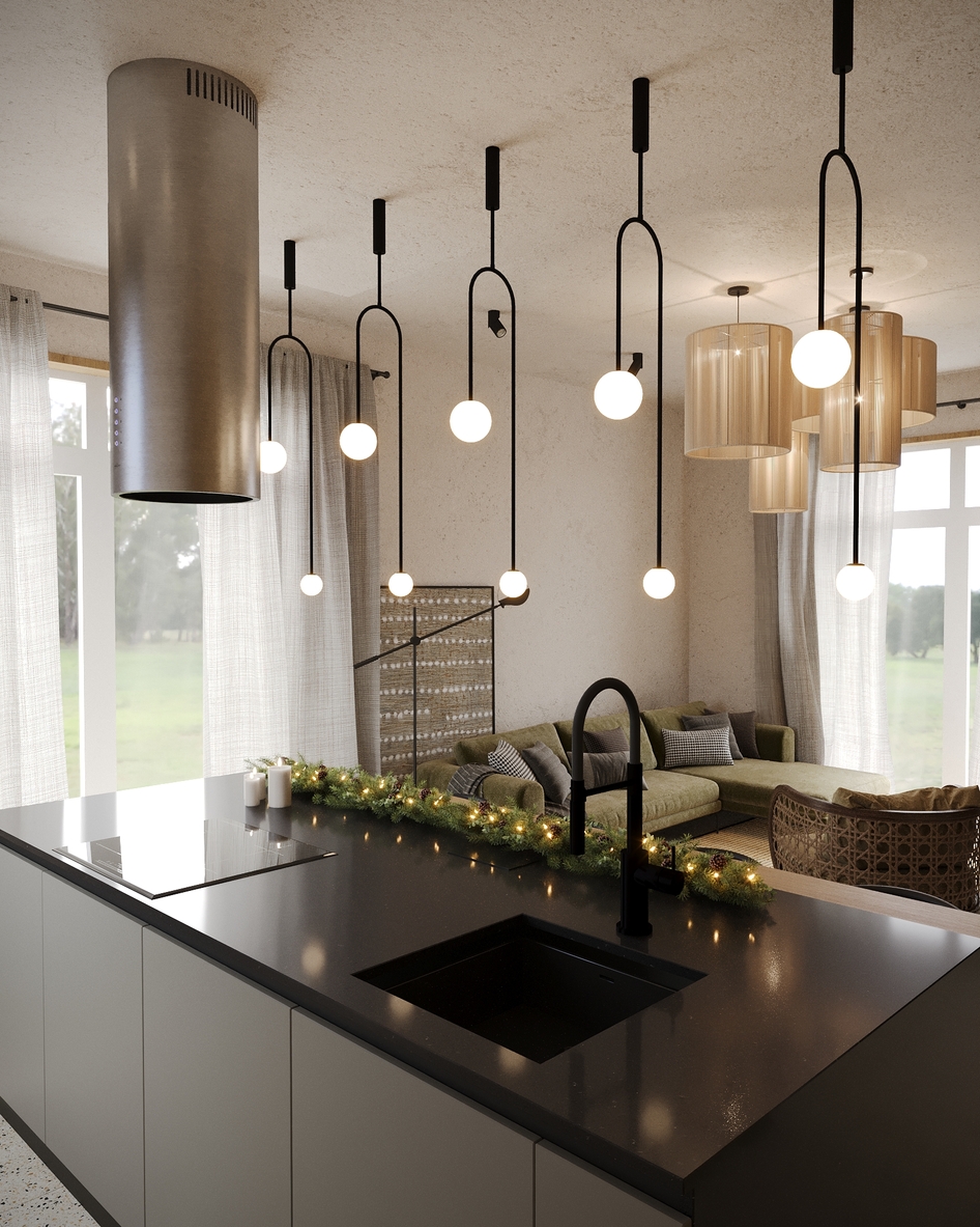 визуализация кухни-гостиной в частном доме