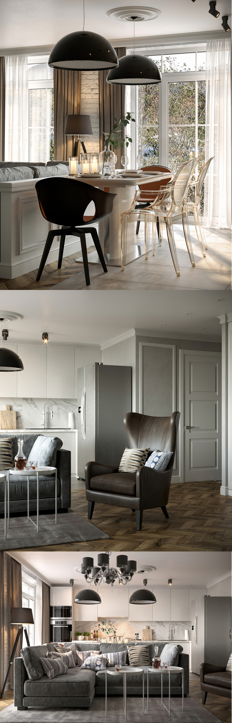Красивый интерьер. Но этот отдельно стоящий холодильник слишком массивно смотрится, лучше конечно бы встроенный сделать (понимаю, что скорее всего данный холодильник пожелание заказчика) За виз +5