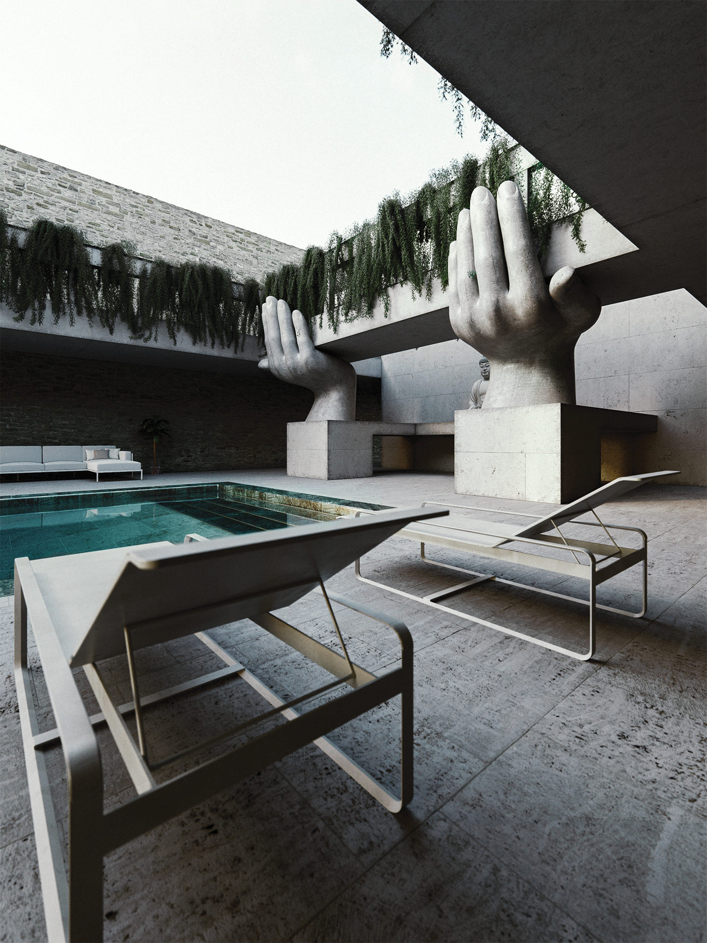легкий перешарп. тени слишком темные, без оттенков. материал камня простоват, хочется легких преломлений.