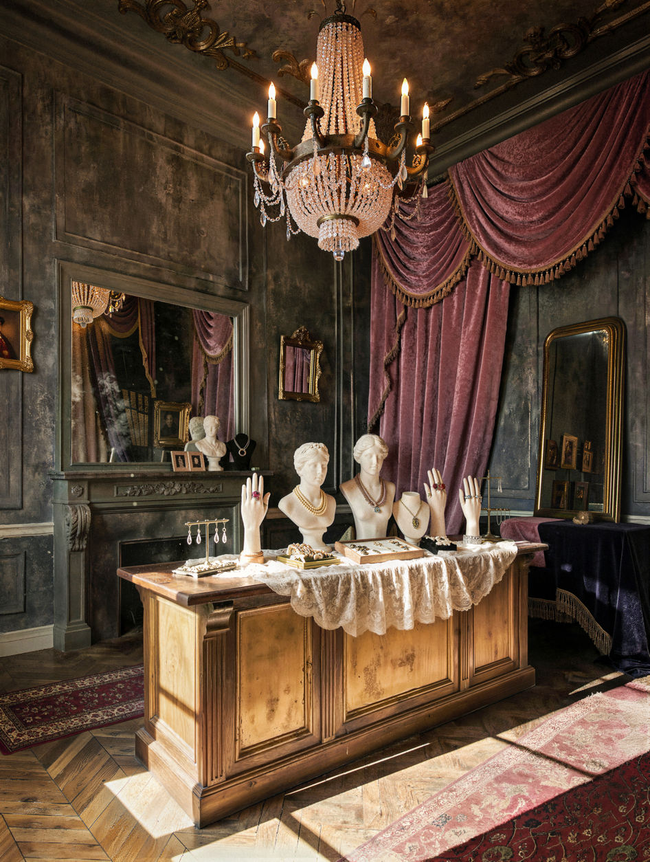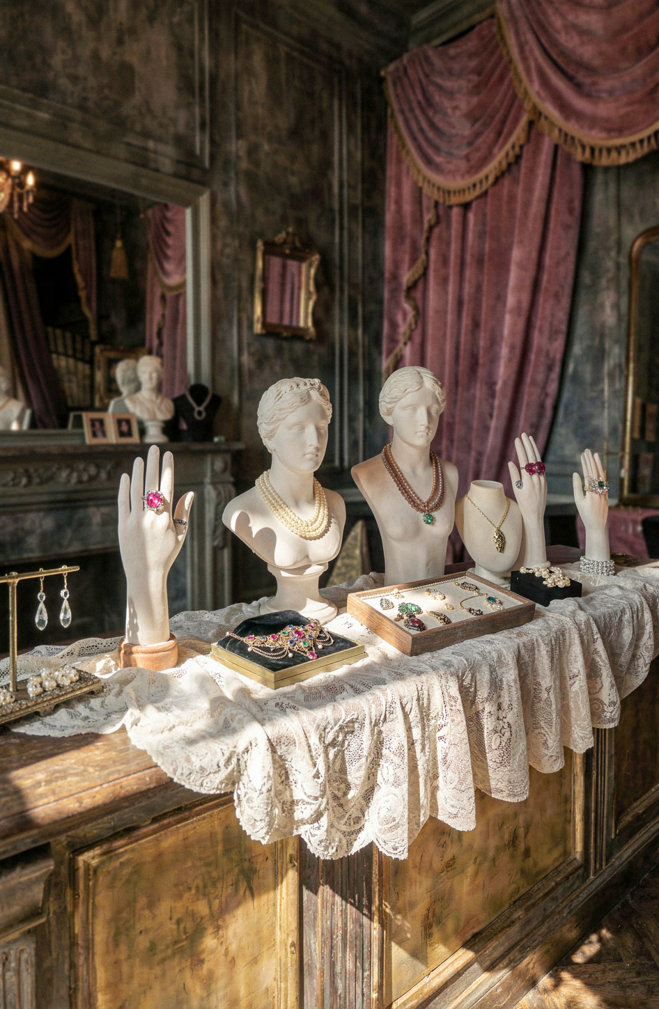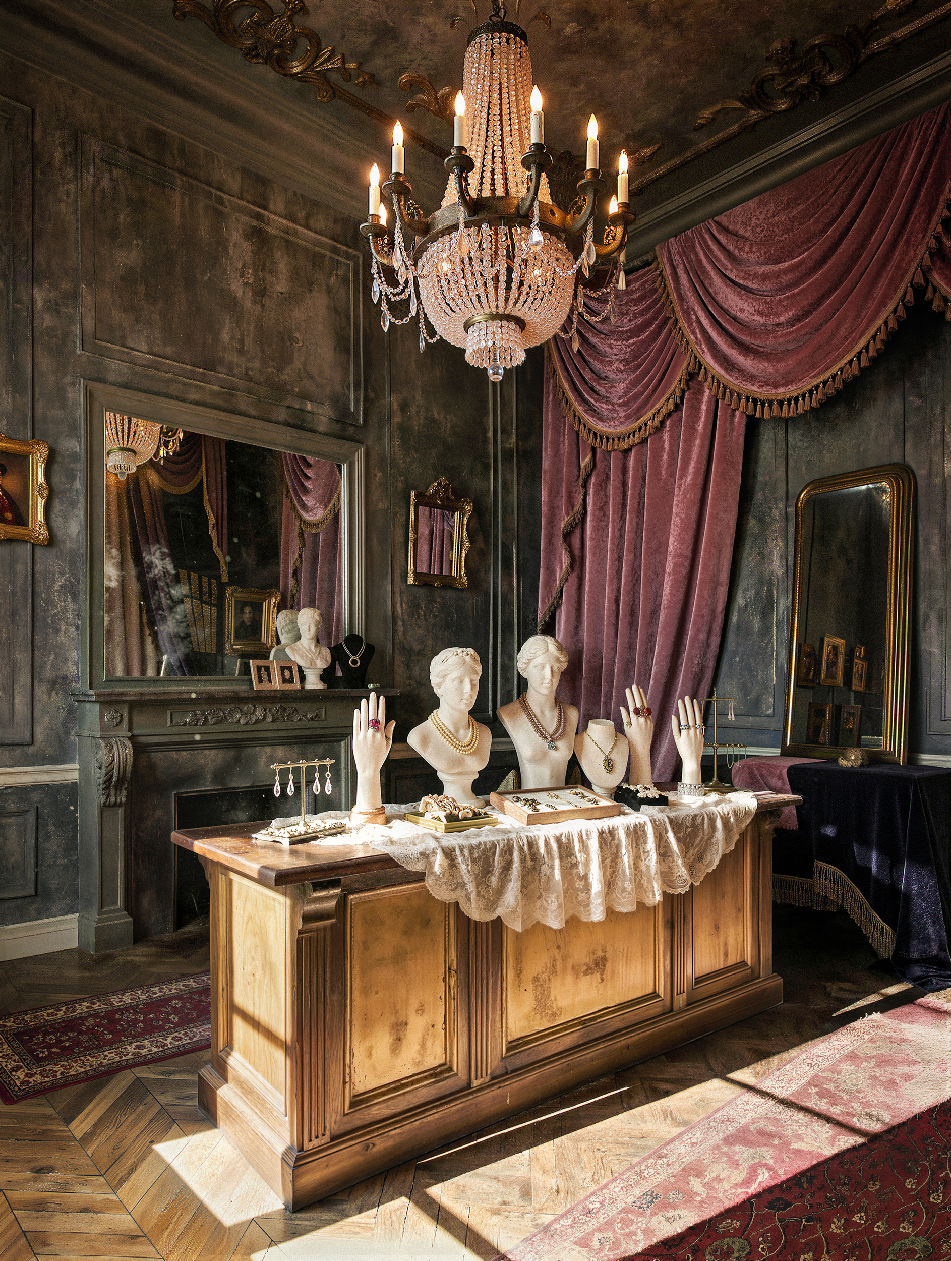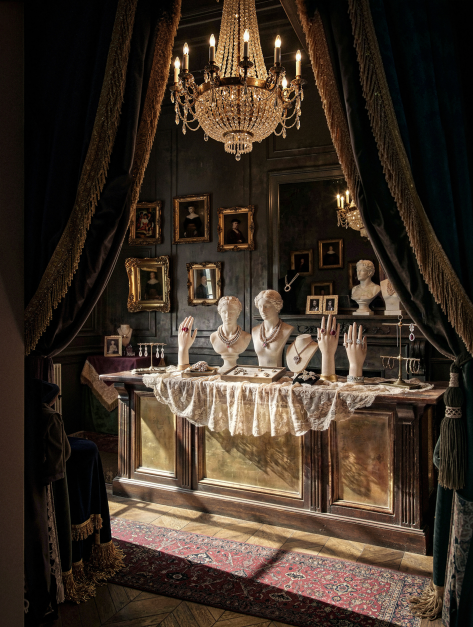 Навернео как ювелирный бутик этот концепт бестолковый. полутемное старое помещение где толком не рассмотреть ничего. Если закрыть окно то там будет темнота. Даже если предположить что это прошлое все равно не пойнимаю ктоб в такой темноте делал такой обьект.