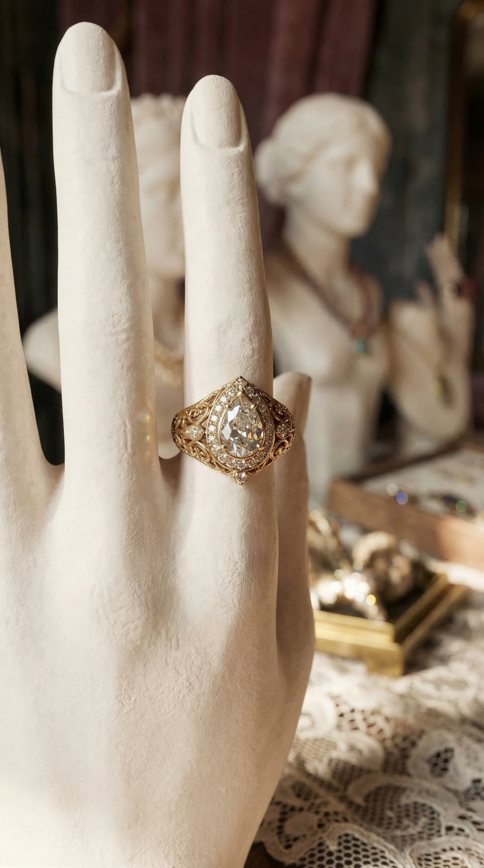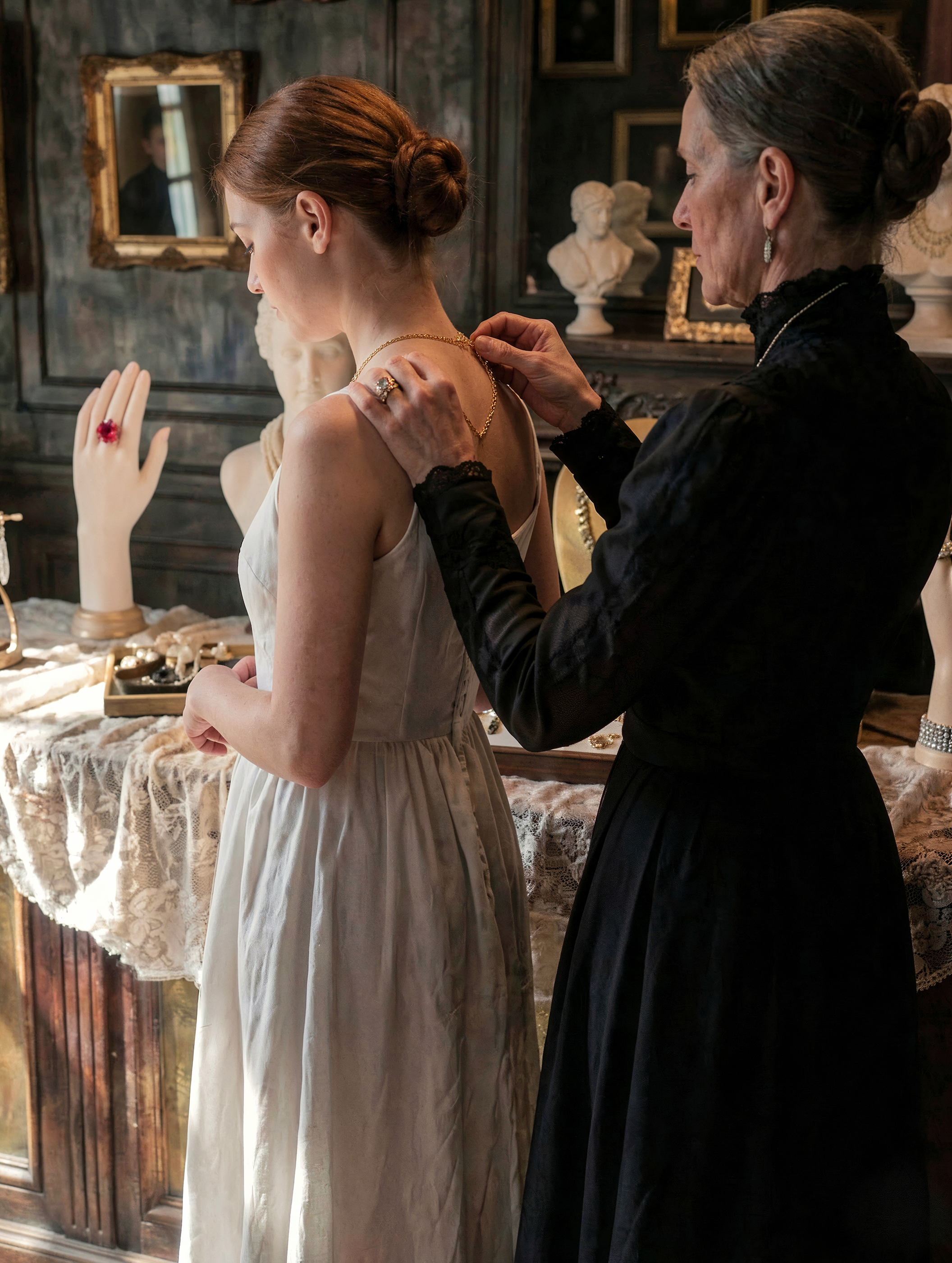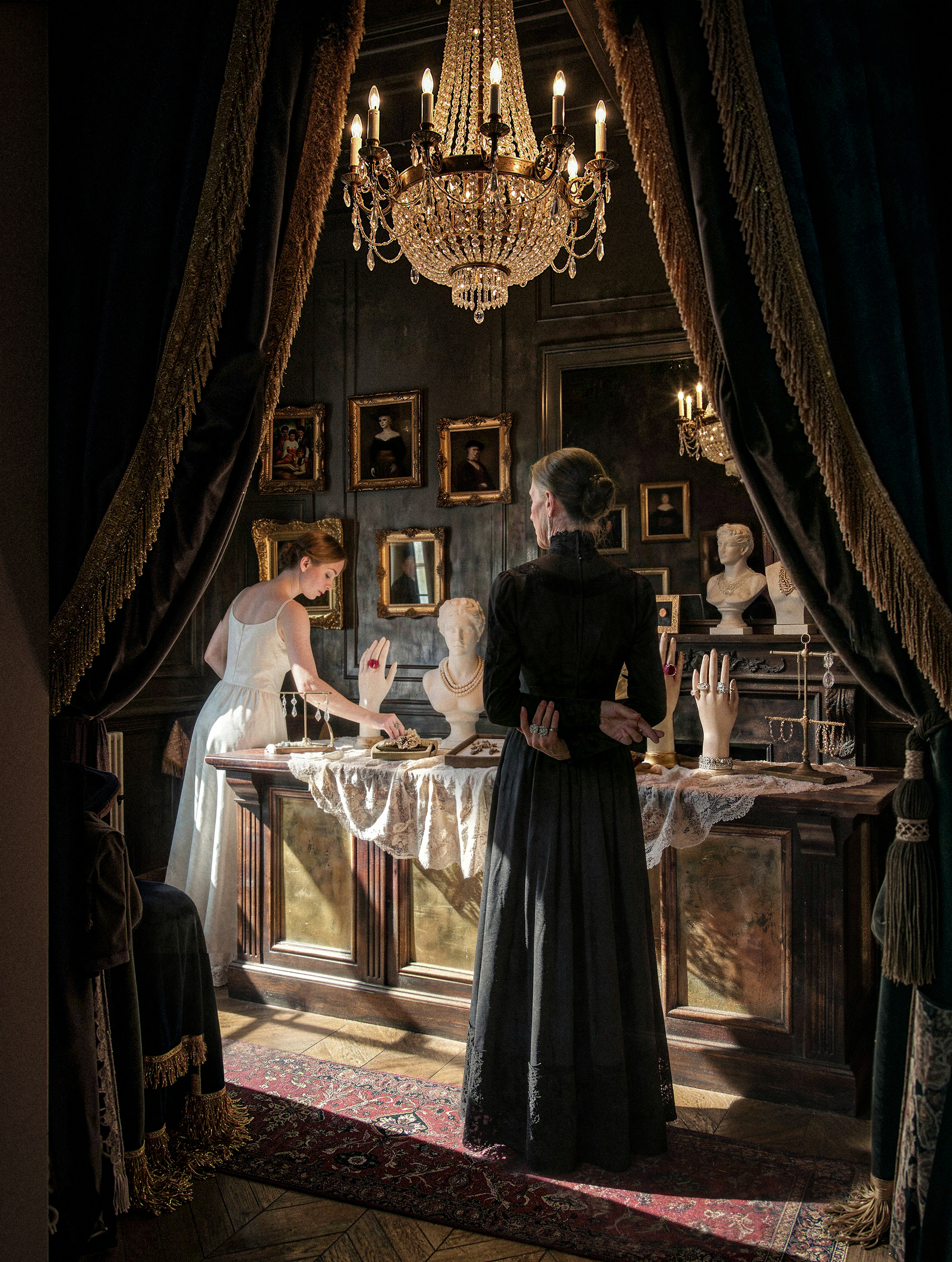 Навернео как ювелирный бутик этот концепт бестолковый. полутемное старое помещение где толком не рассмотреть ничего. Если закрыть окно то там будет темнота. Даже если предположить что это прошлое все равно не пойнимаю ктоб в такой темноте делал такой обьект.