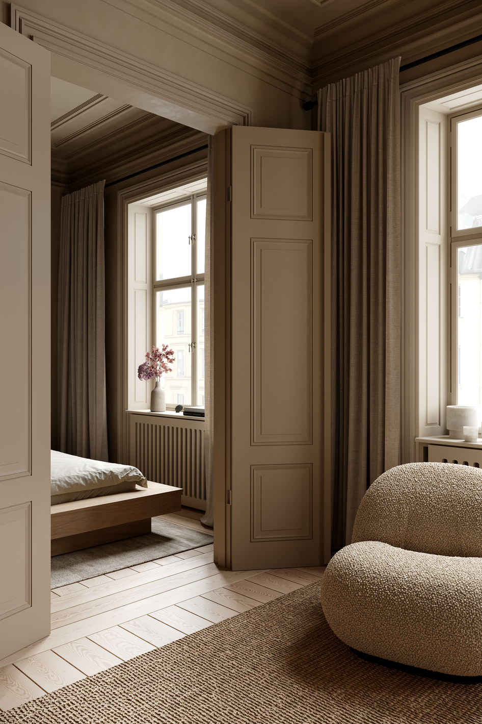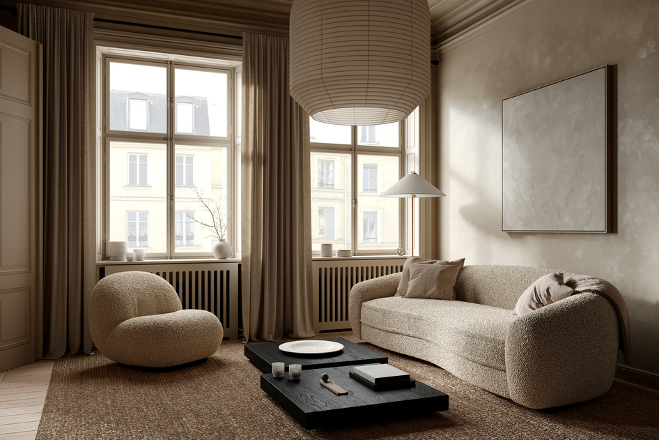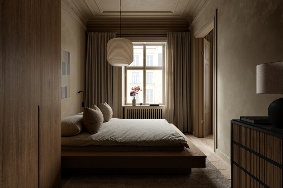 Japandi interior in Stockholm Year: 2025 Software: 3ds Max, Corona renderer, Photoshop