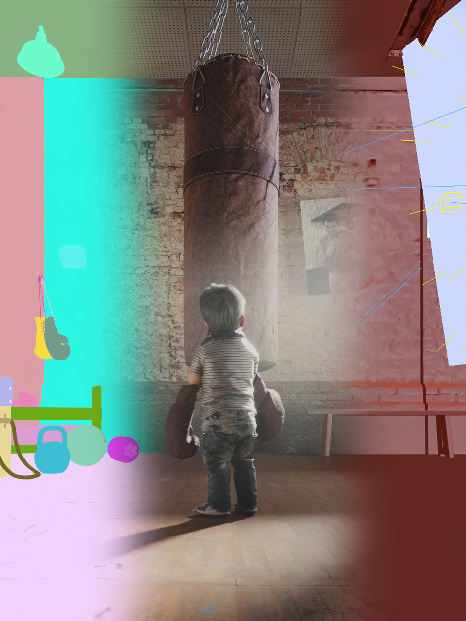 почему ребенок у боксерской груши уже седой, его отец с ним боксом с его рождения занимается, что ли?