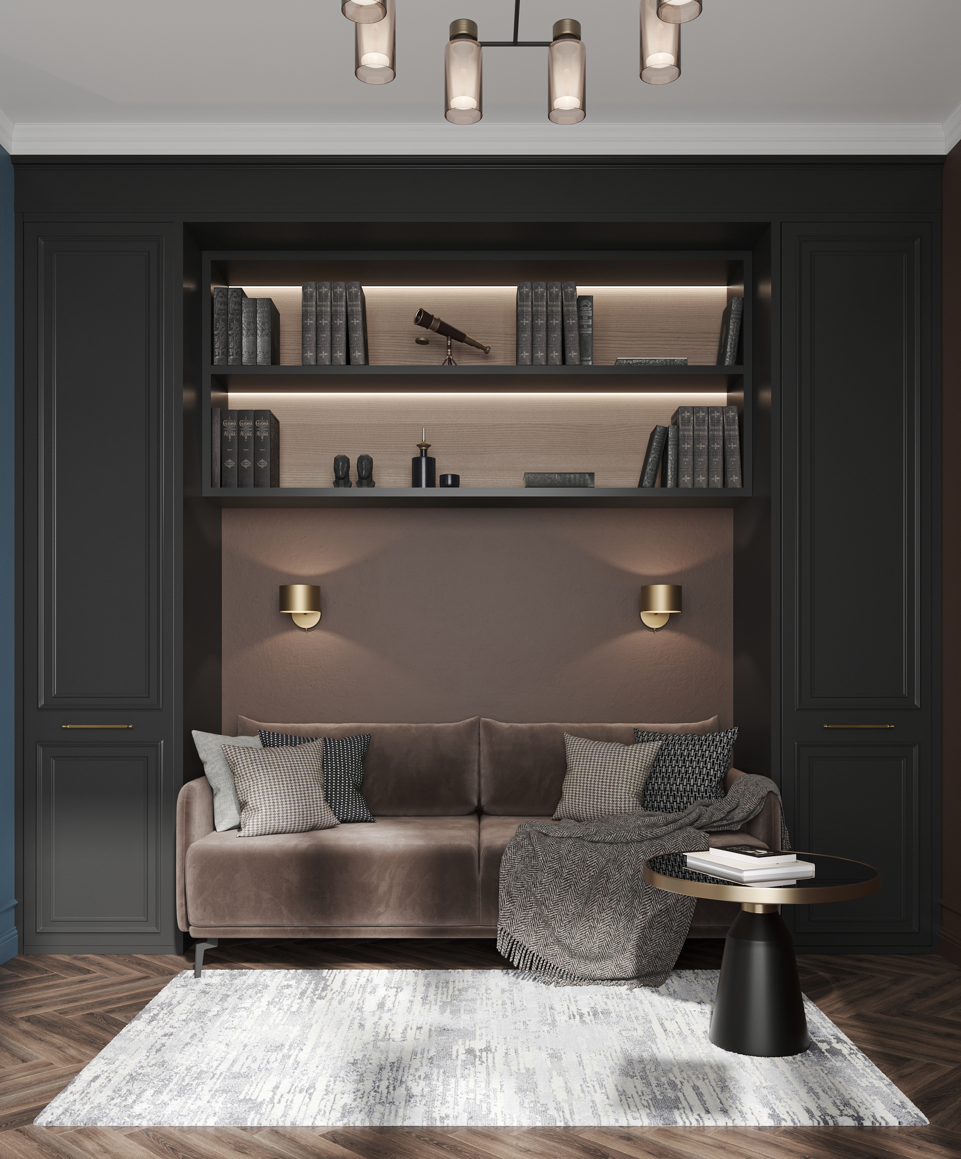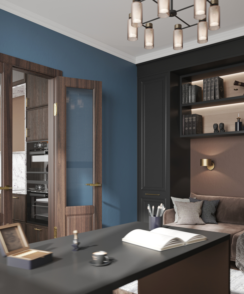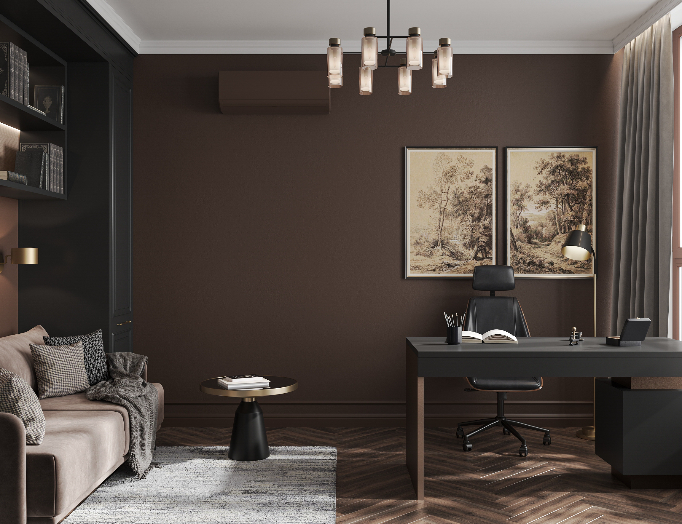 Вся квартира выполнена в шоколадных тонах. В том числе кабинет и спальня https://3ddd.ru/galleries/gallery/shokoladnye-sny.