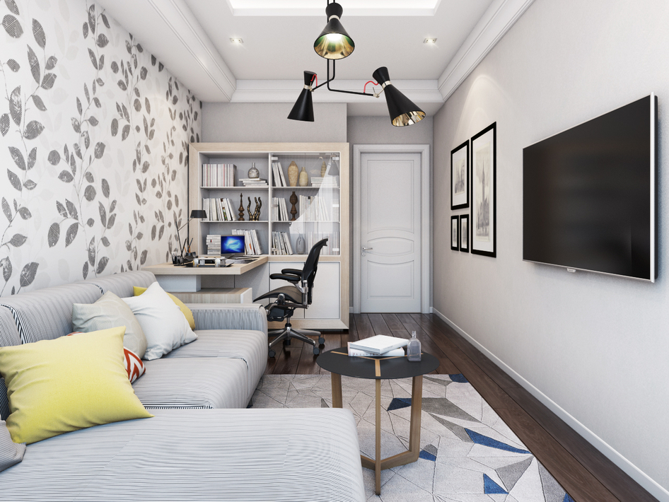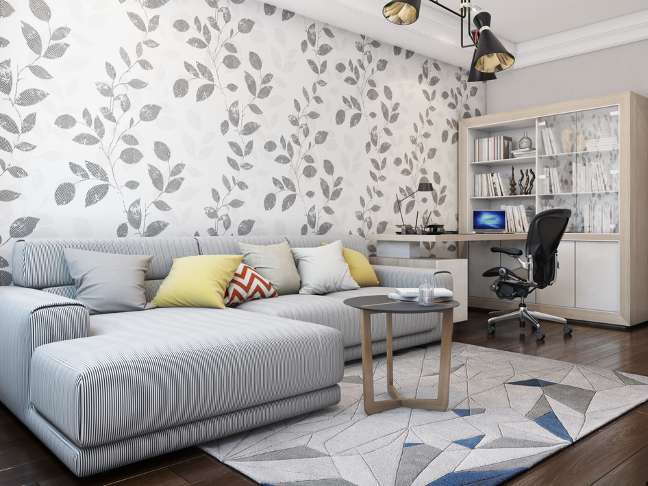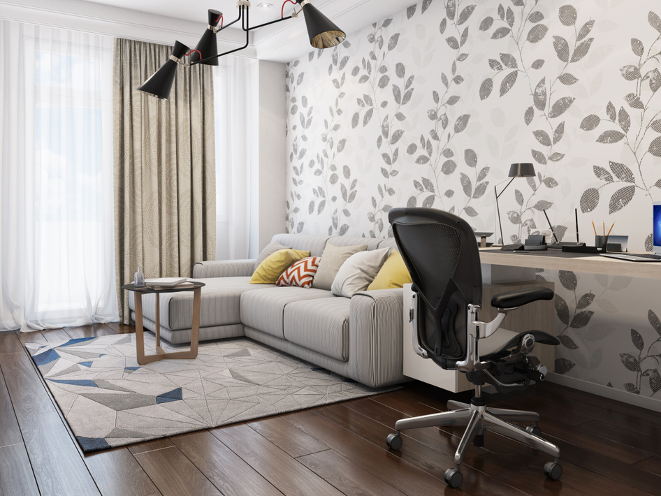 жирновасто студенту кабинет иметь. смущает геометрия на ковре+ листики на стене