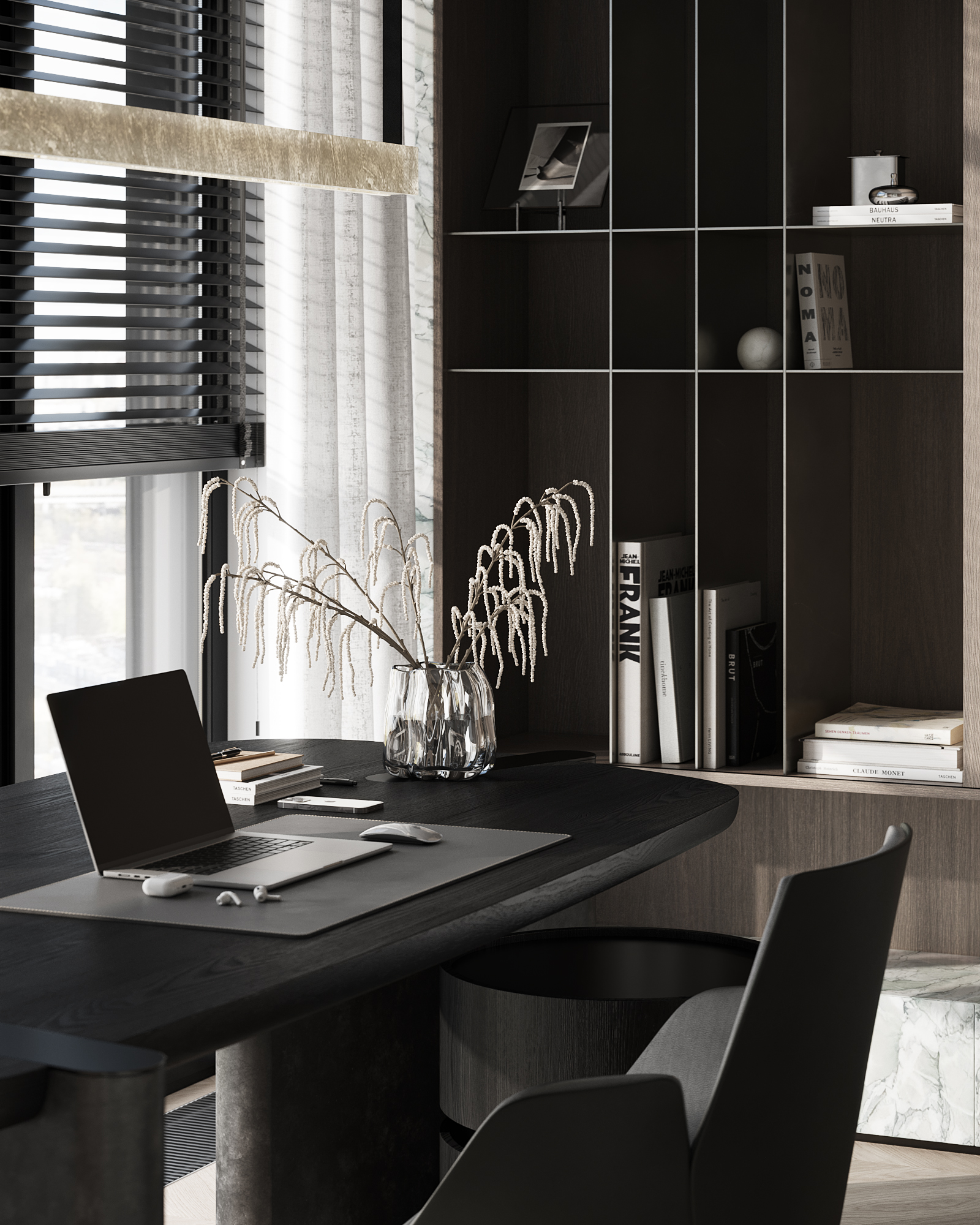 Визуализации домашнего кабинета для мужчины в проекте квартиры ЖК Река, г. Москва. 3dsMax, Corona, Photoshop. Больше работ здесь: