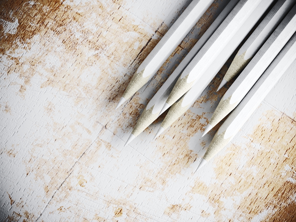 Все белые карандаши одинаково заточены, длина грифеля одинаковая, ни одним карандашом не пользовались, грифель ни на миллиметр не сточен. Это выдает компьютерность изображения. (хотя может они прямо из коробки, но тогда в изображении нет истории).