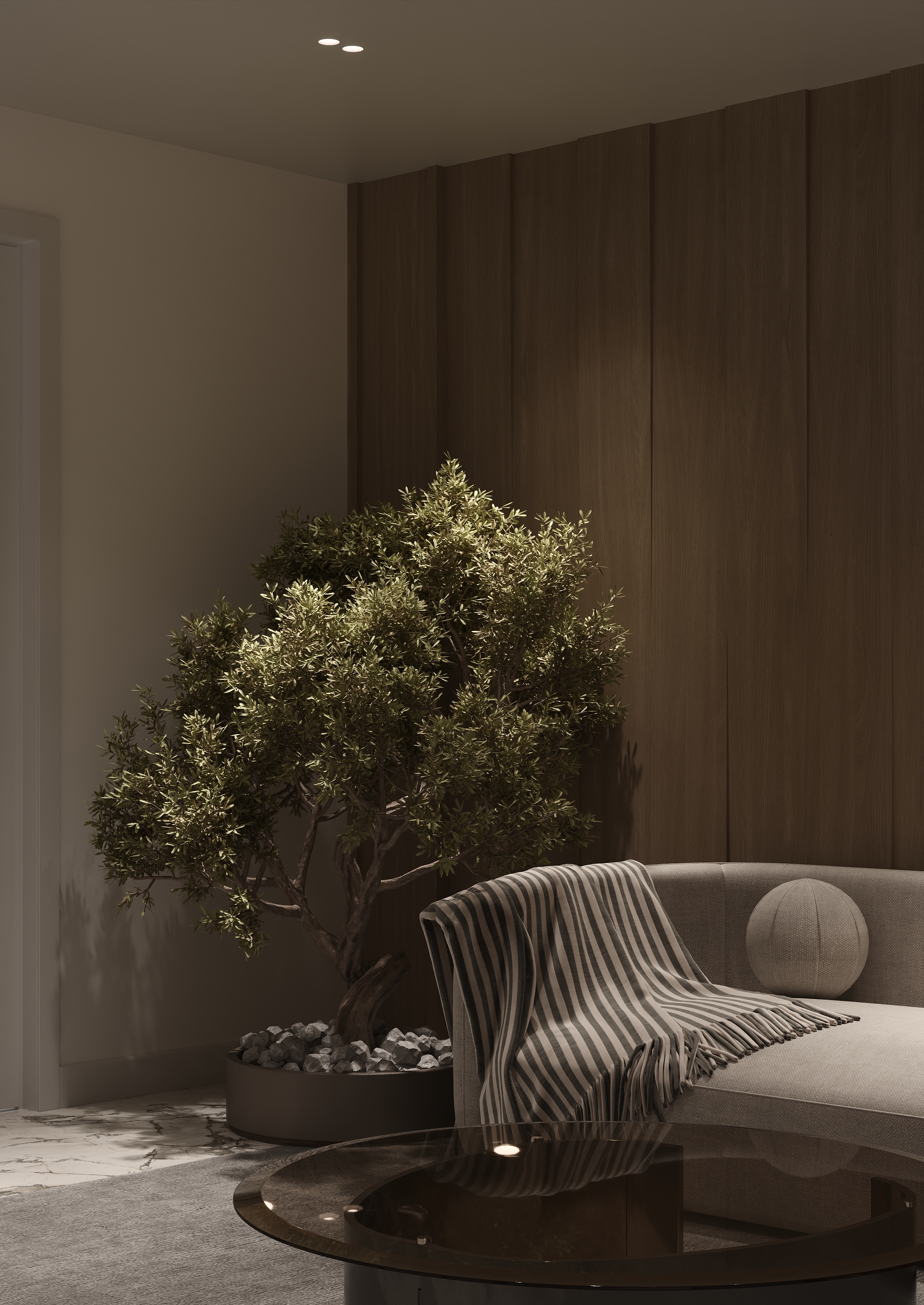 Проект выполнен для частного дома в современном стиле. Основная идея — создать уютное и функциональное пространство с теплыми текстурами дерева, мягким светом и лаконичной мебелью.