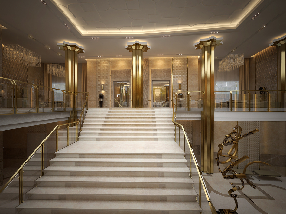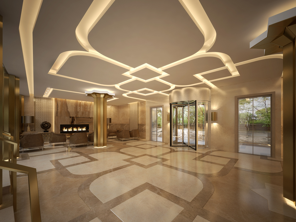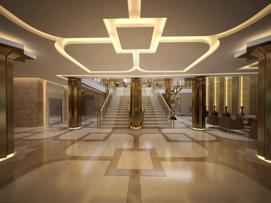 Дизайн проект холла жилого дома на Крестовском острове. Холл выполнен с применением продукции «Margraf S.p.a.»