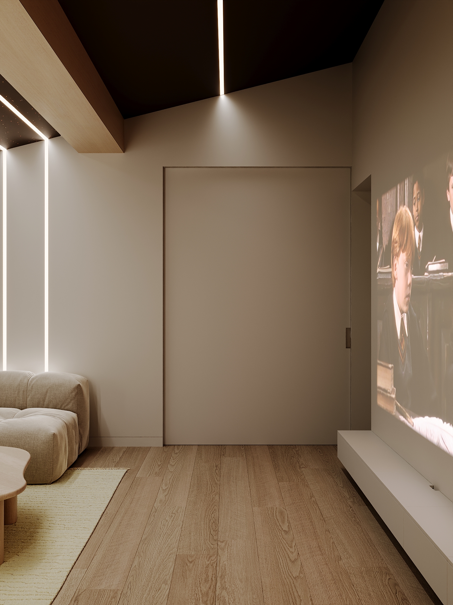 Кинозал в проекте дома в Екатеринбурге в стиле минимализм