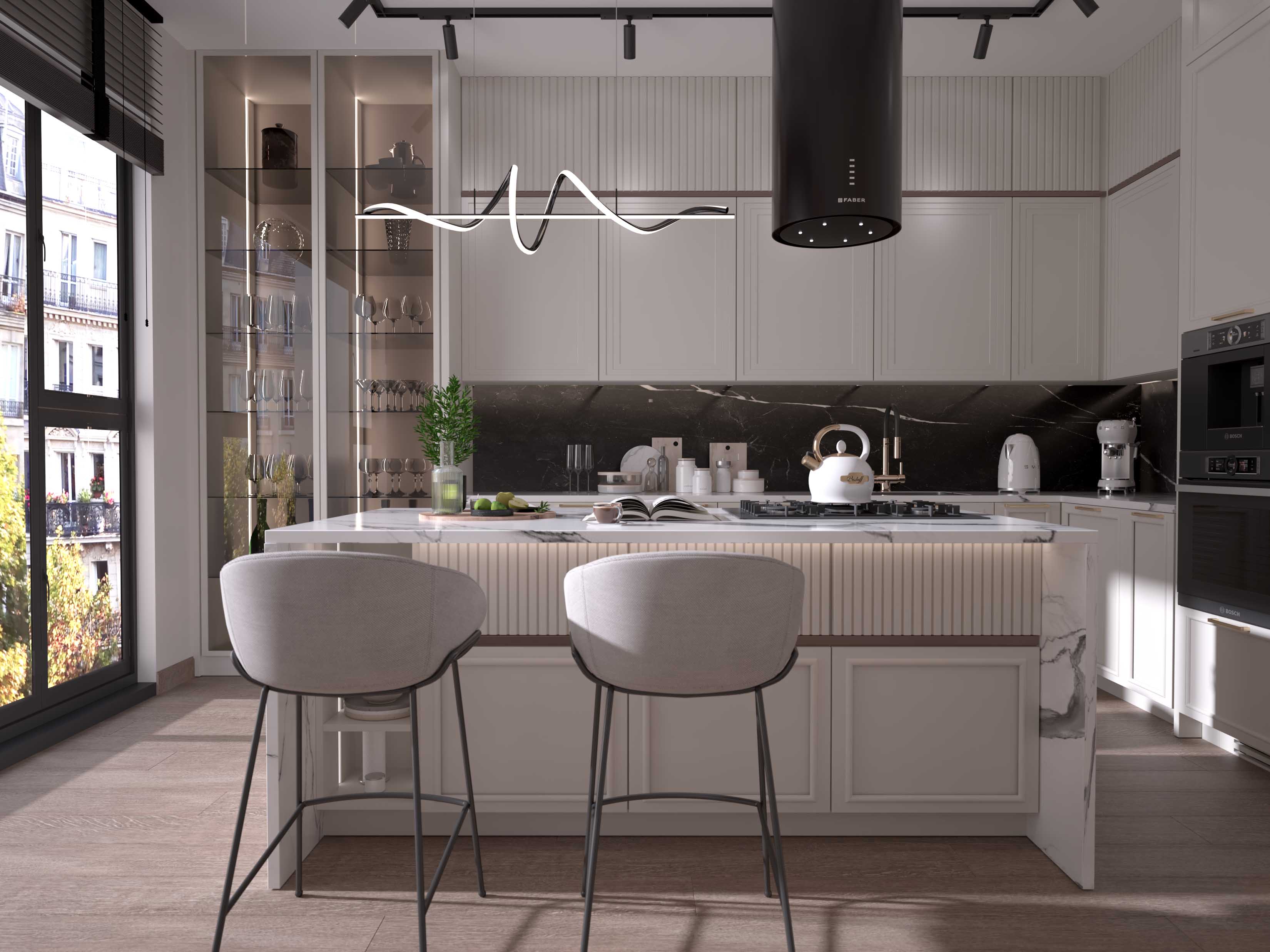 3Ds max Vray render Photoshop kitchen