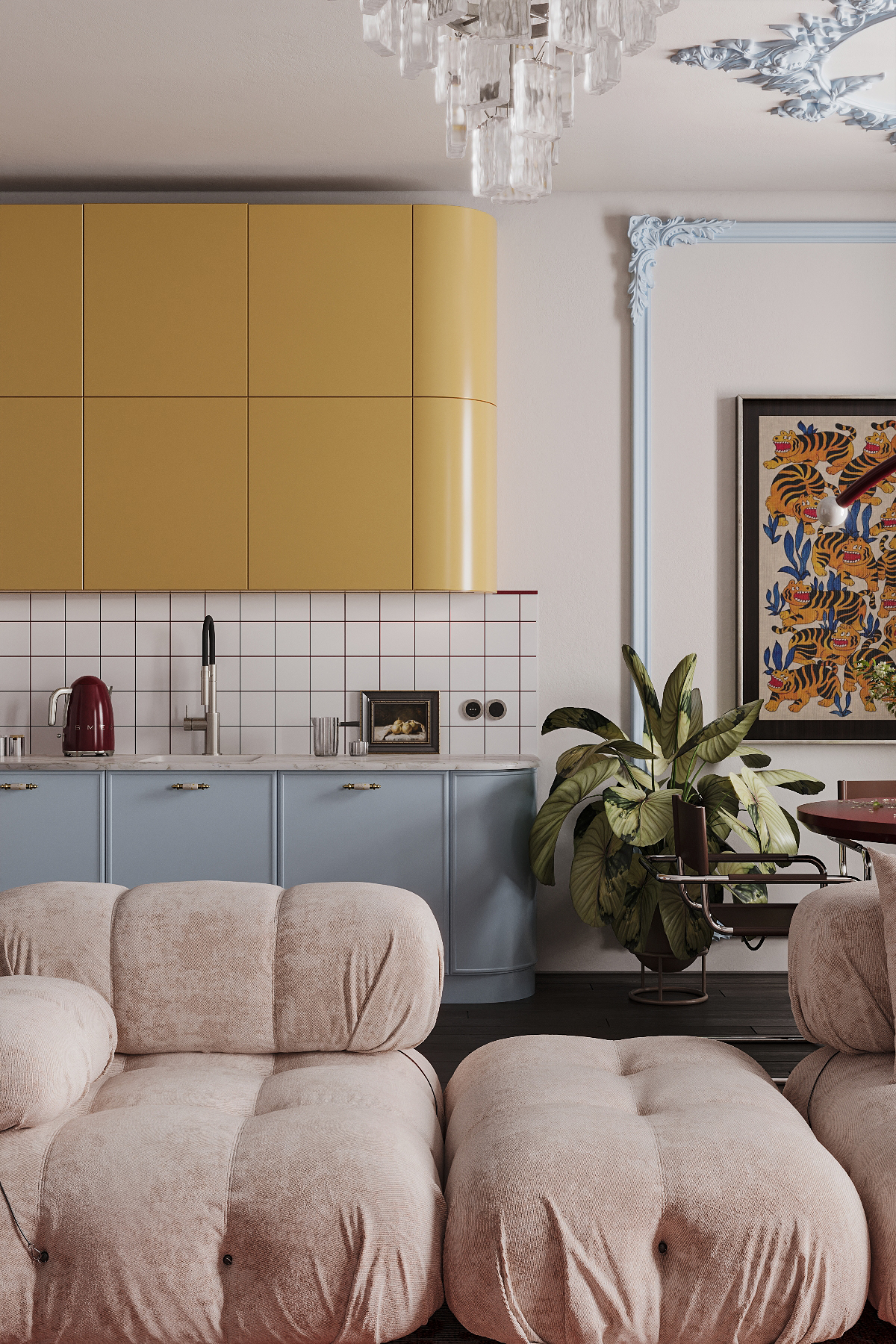 радиусные фасады были мечтой, поэтому они, на мой взгляд, неплохо вписались) Из-за того, что радиусные фасады, нужно было завести фартук до плиты, поэтому с небольшим кантиком сделала так) Про пылесборника на верхних шкафах - всем по-разному оценивают красоту. Мне например не нравится кухня в потолок. Она выглядит как памятник)) А про пересвет окна - нравится такой эффект как на фотокамере)) когда делаешь фото и не фокусируешься на свете из окна, то получается засвет)) опять же все думают по-разному))