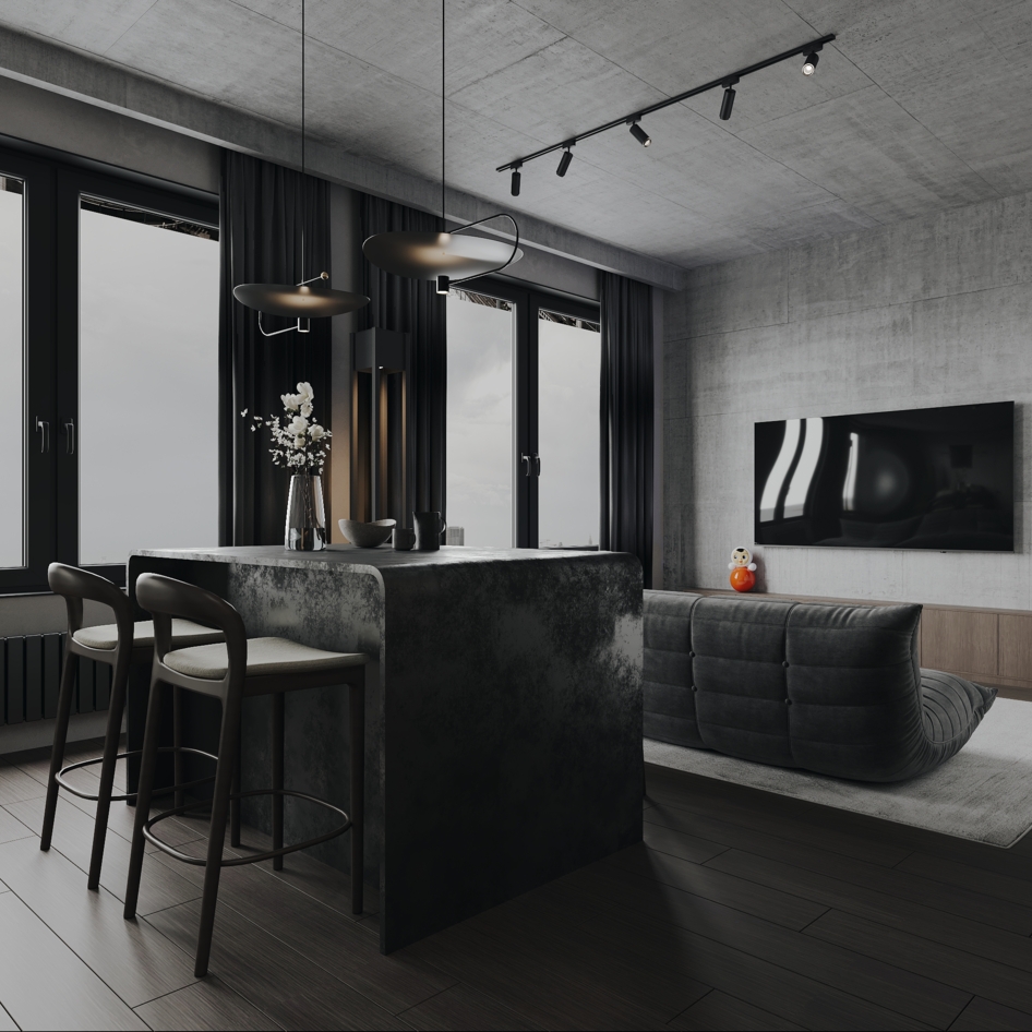Визуализация Кухни гостиной Behance: