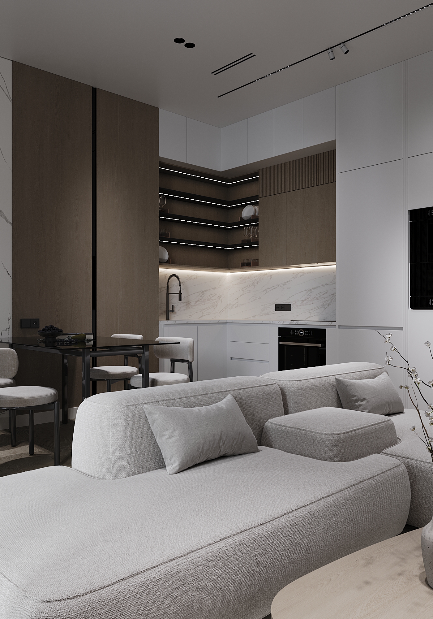 Kitchen studio in style minimalist