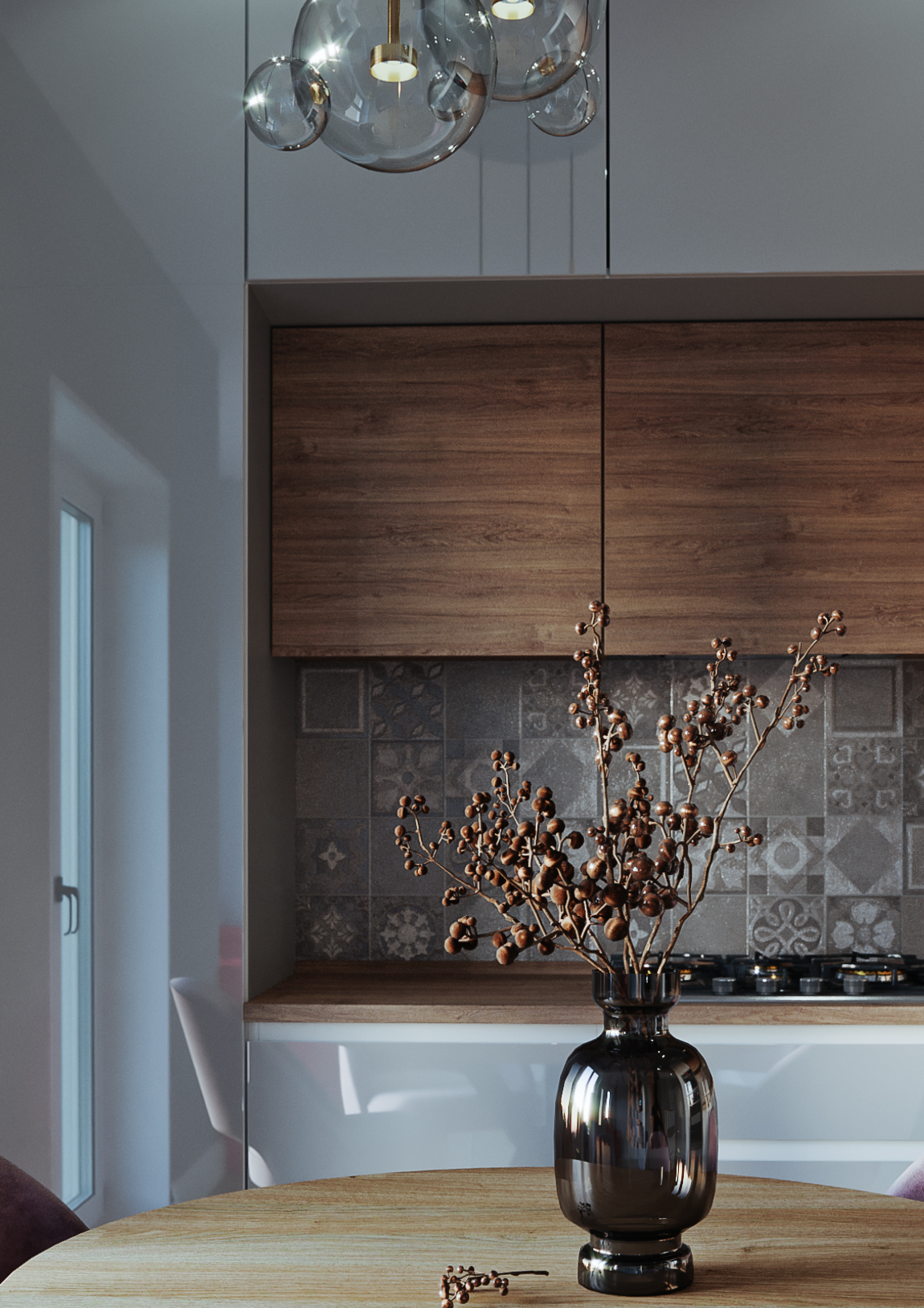 Всё ок, кроме света от точек. По шкафам он есть. В реальности он и дальше будет. А в визе исчез и темно. Я бы или выключила их нафиг, или уже пусть светят как надо. А то недотр....з визуальный получается. Ну, и да. Надо почище посчитать его. Шумноват. А в фш начнешь убирать, текстура поедет. Дизайн хорош, тут спору нет.