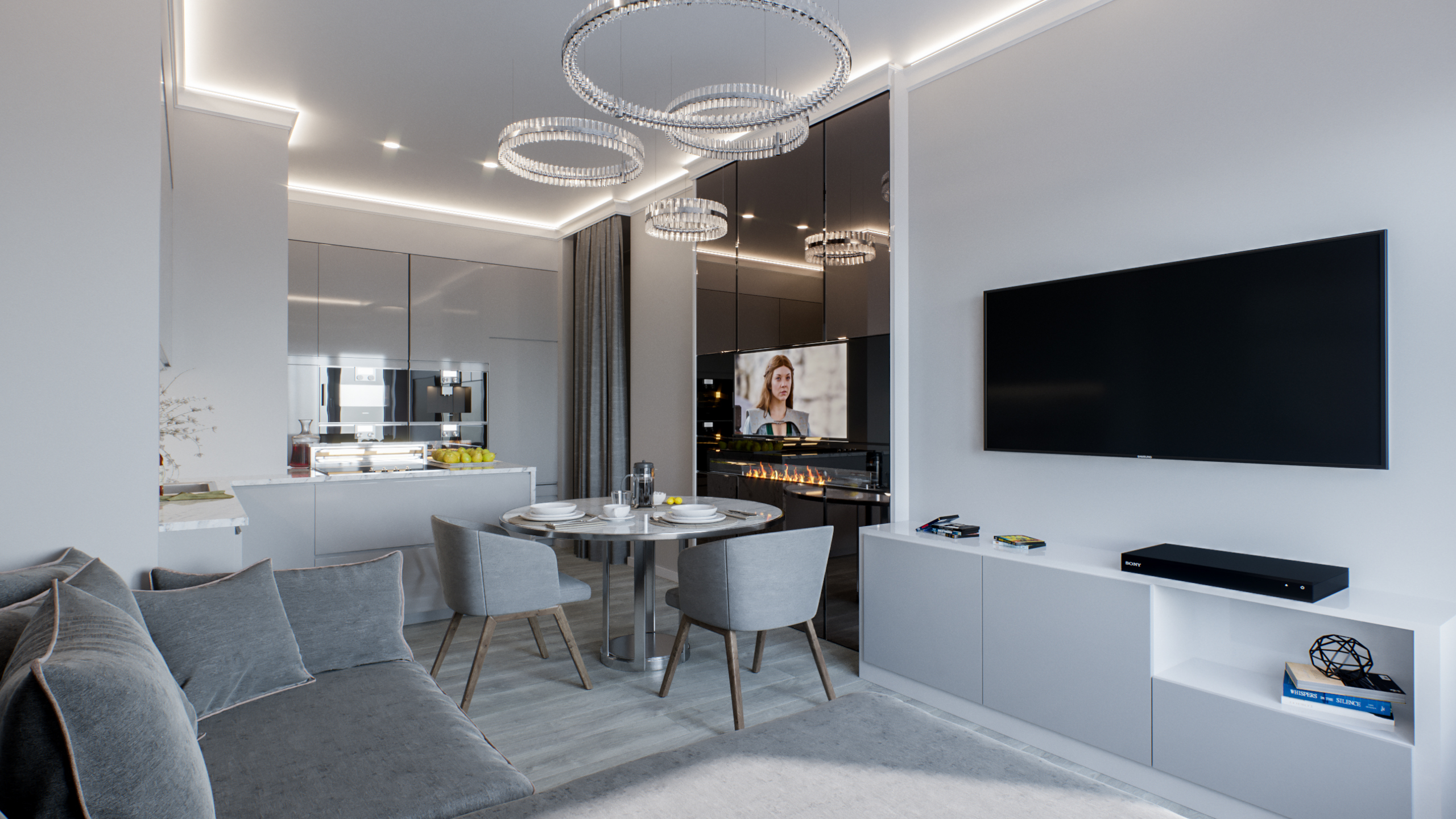 Кухня-гостинная в жк "Сердце столицы" Дизайн: Екатерина Агусева Виз: Талгат Мырзахан несколько ракурсов по ссылке