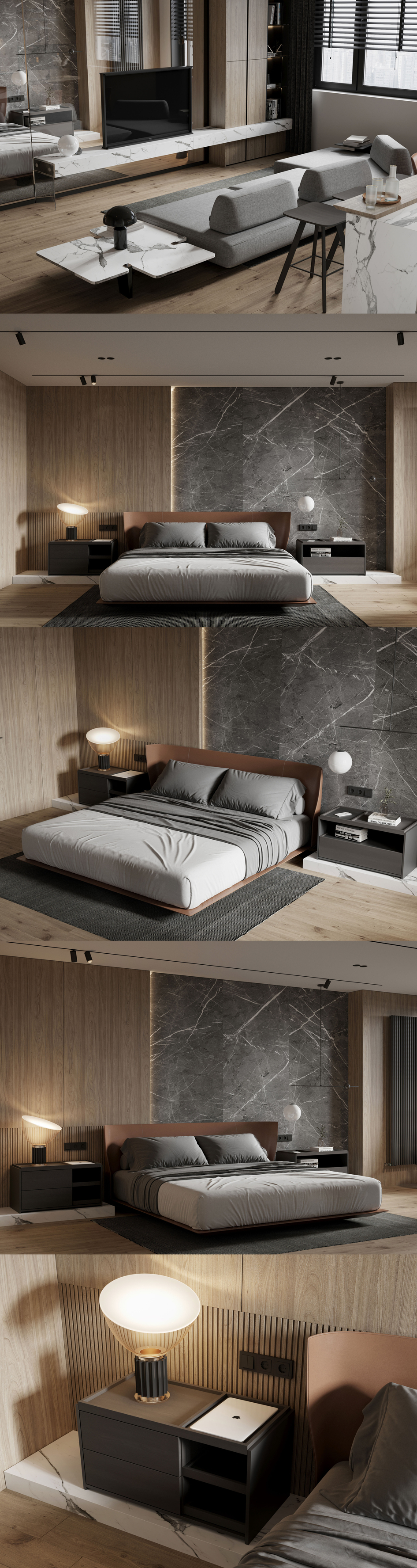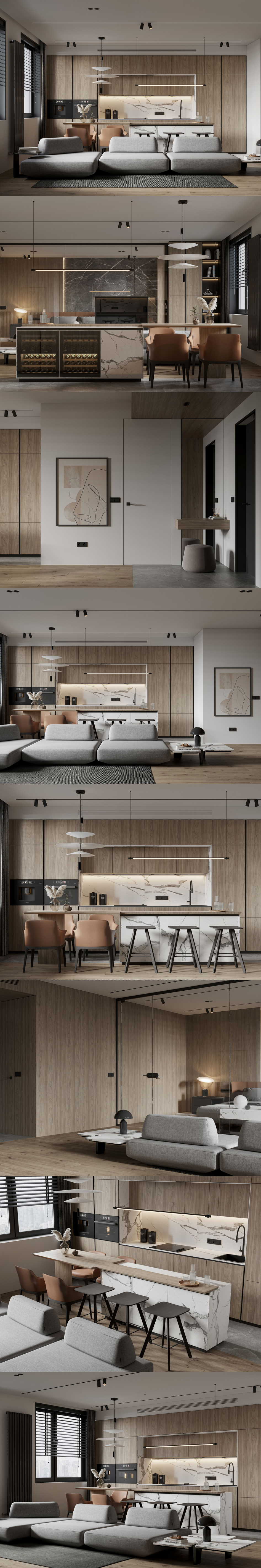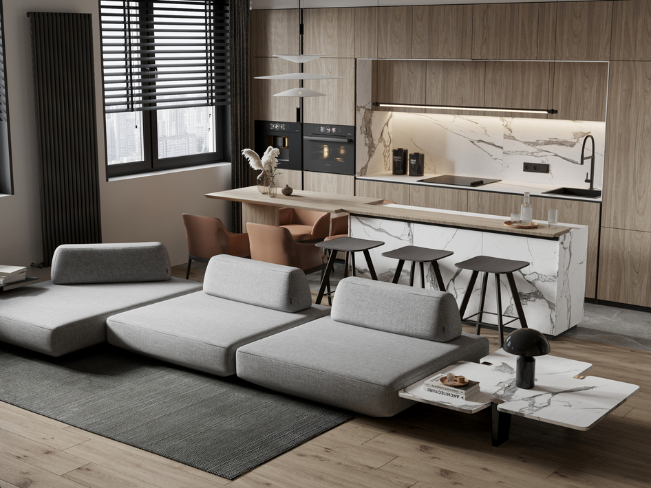 Kitchen, living room and bedroom(сделано по референсу)