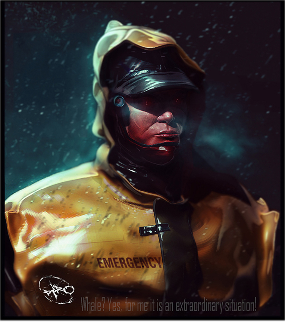 Зловещий у него взгляд. Когда прочитала подпись, всё встало на свои места. Сначала подумала что у него слезы, но нет, они просто налитые кровью, жаждущие очередного убийства безвинного.