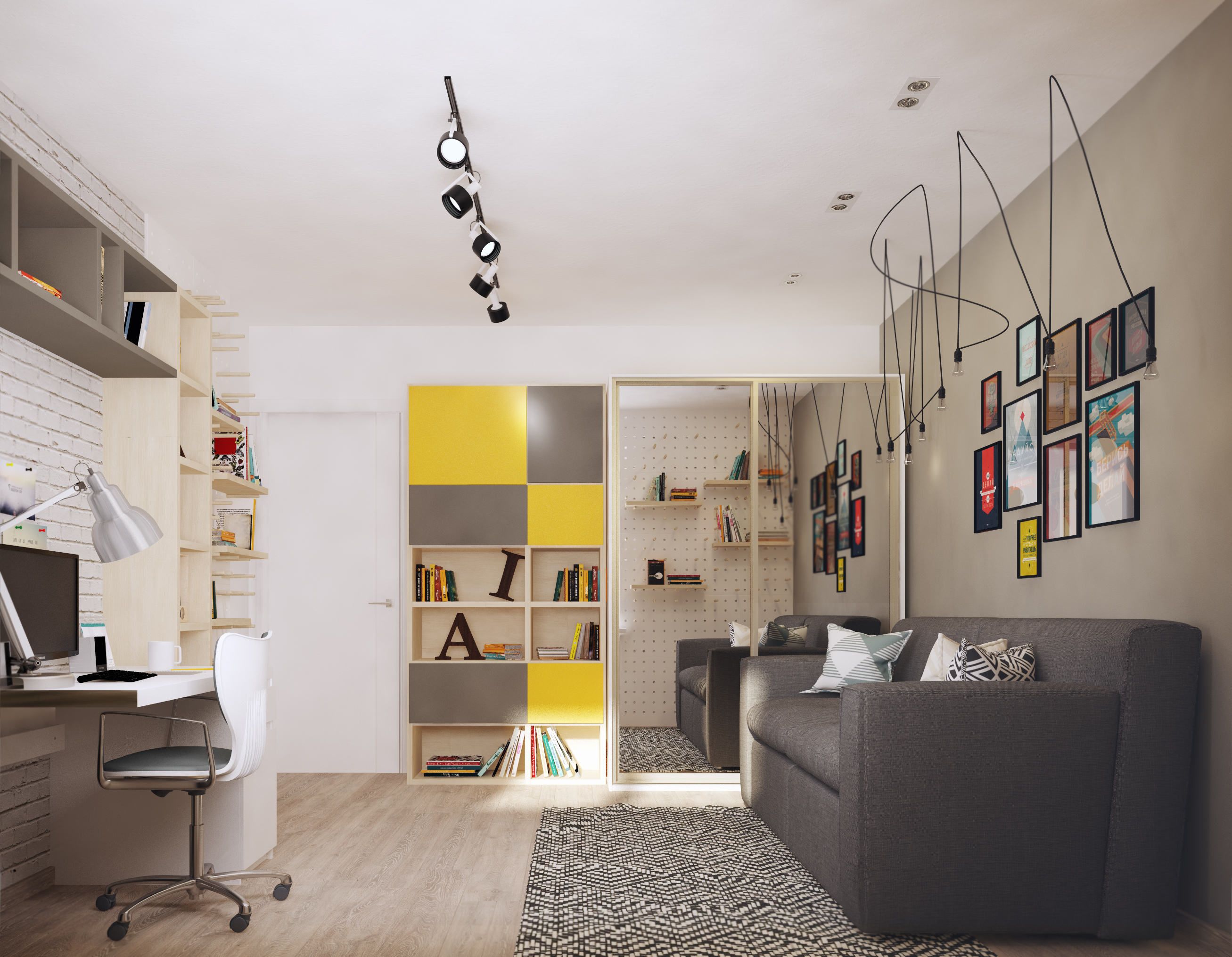 Классная визуализация. И идея с полками реально крутая)) Если по придираться, то бросаются в глаза откосы у окна, а точнее верхний откос, да и вообще кирпичу не хватает объёма, если это клинкерная плитка конечно, а не фотообои
