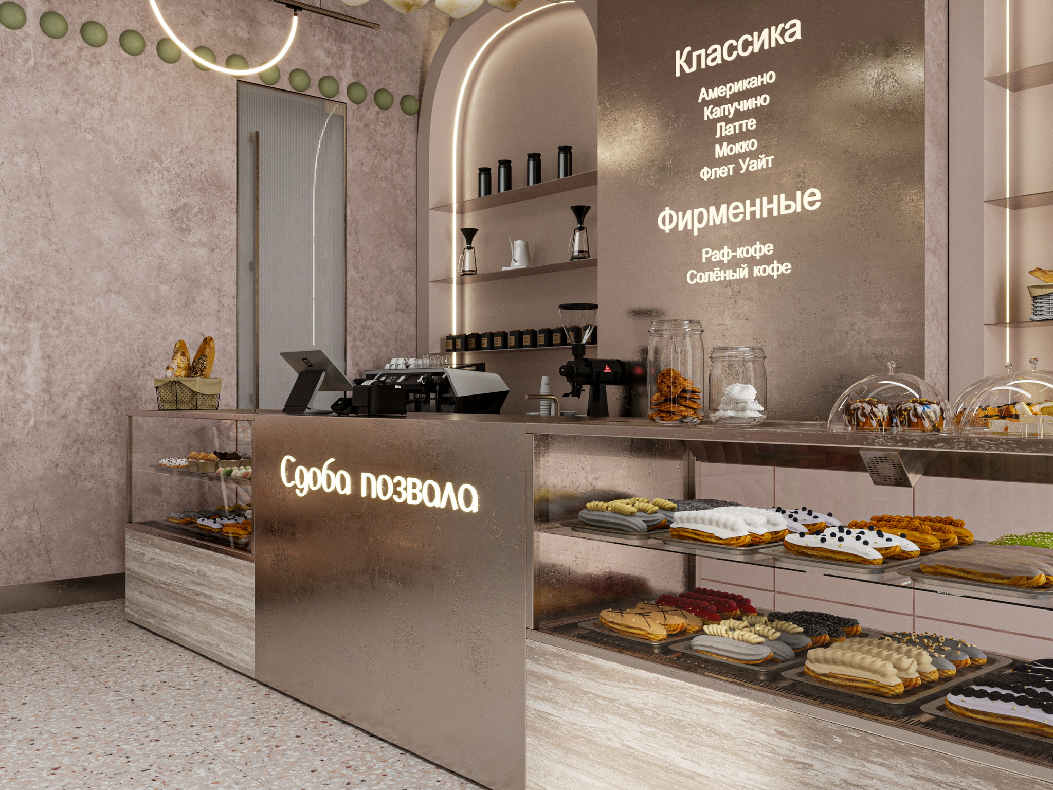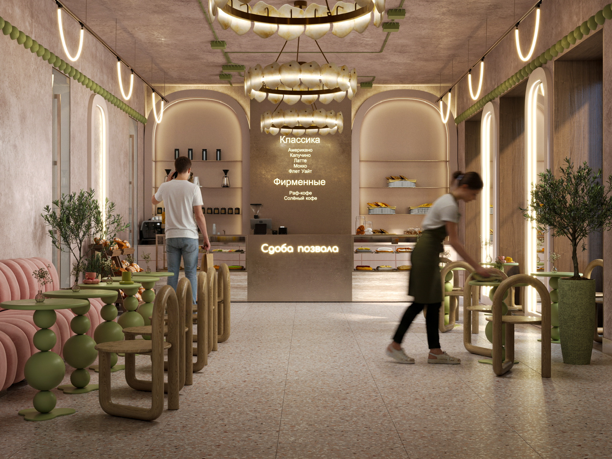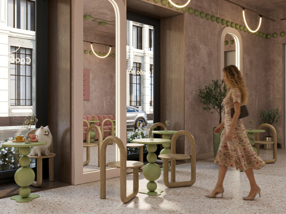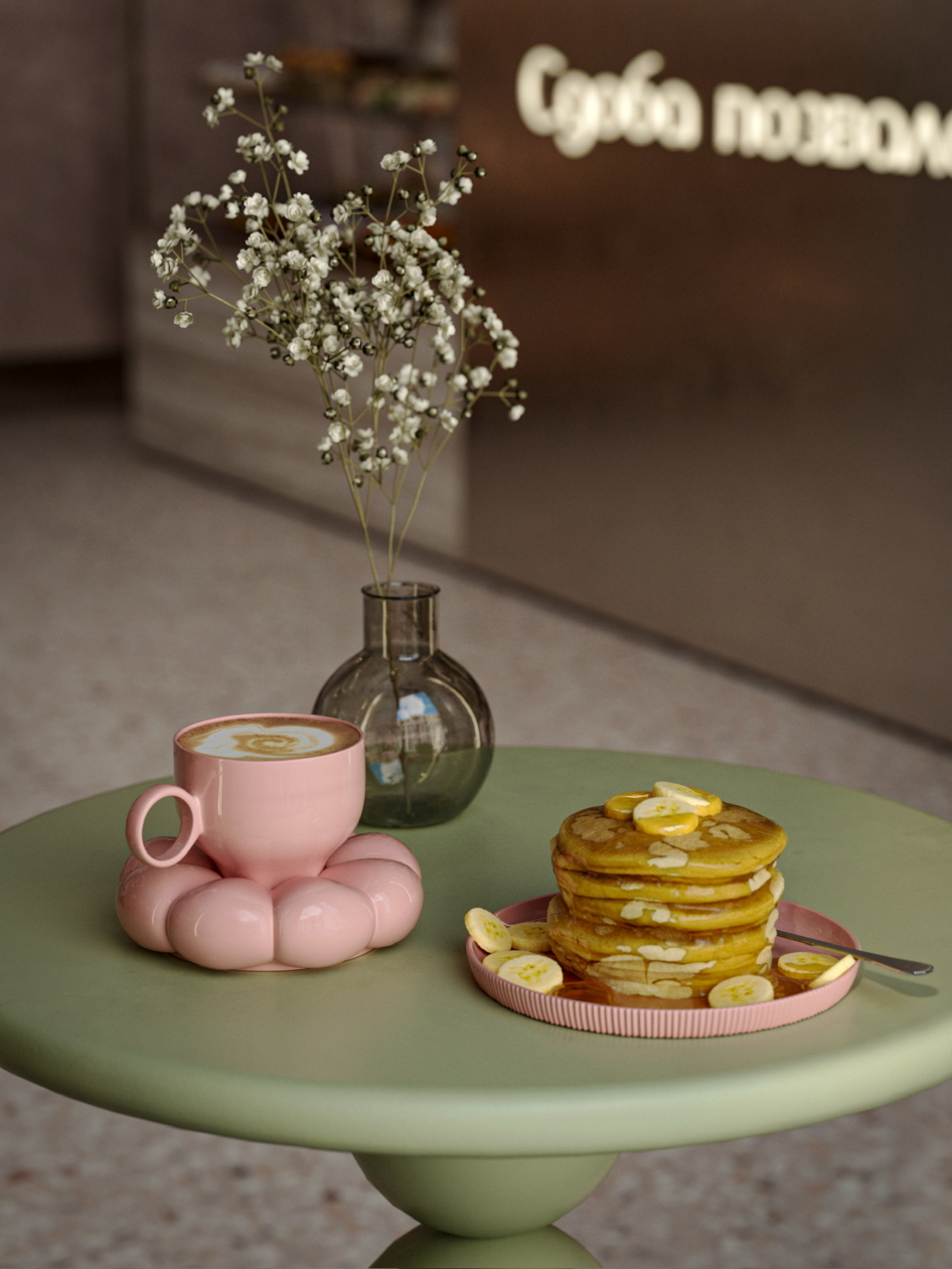 Пошуршав в желтом поисковике материалы, я влюбилась вот в эти, на последнем рендере. Сердце стало биться чаще, а нейронные связи уже рисовали образ заведения. Ну, а дальше дело техники: чих пых, расстановка, моделирование, настройка материалов, пререндеры и, наконец, финалочки. Ну и самая финалочка, прогнать пару рендеров в ИИ для атмосфэры. Не зря же с меня ежемесячно списываются мои честно заработанные на удивительный и одновременно пугающий в своей реалистичности искусственный интеллект.