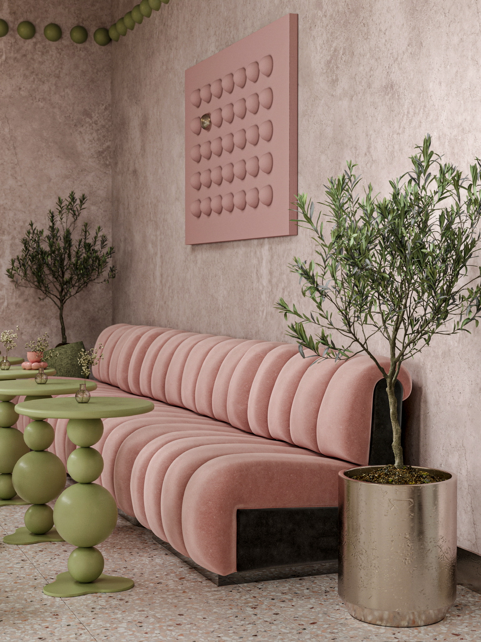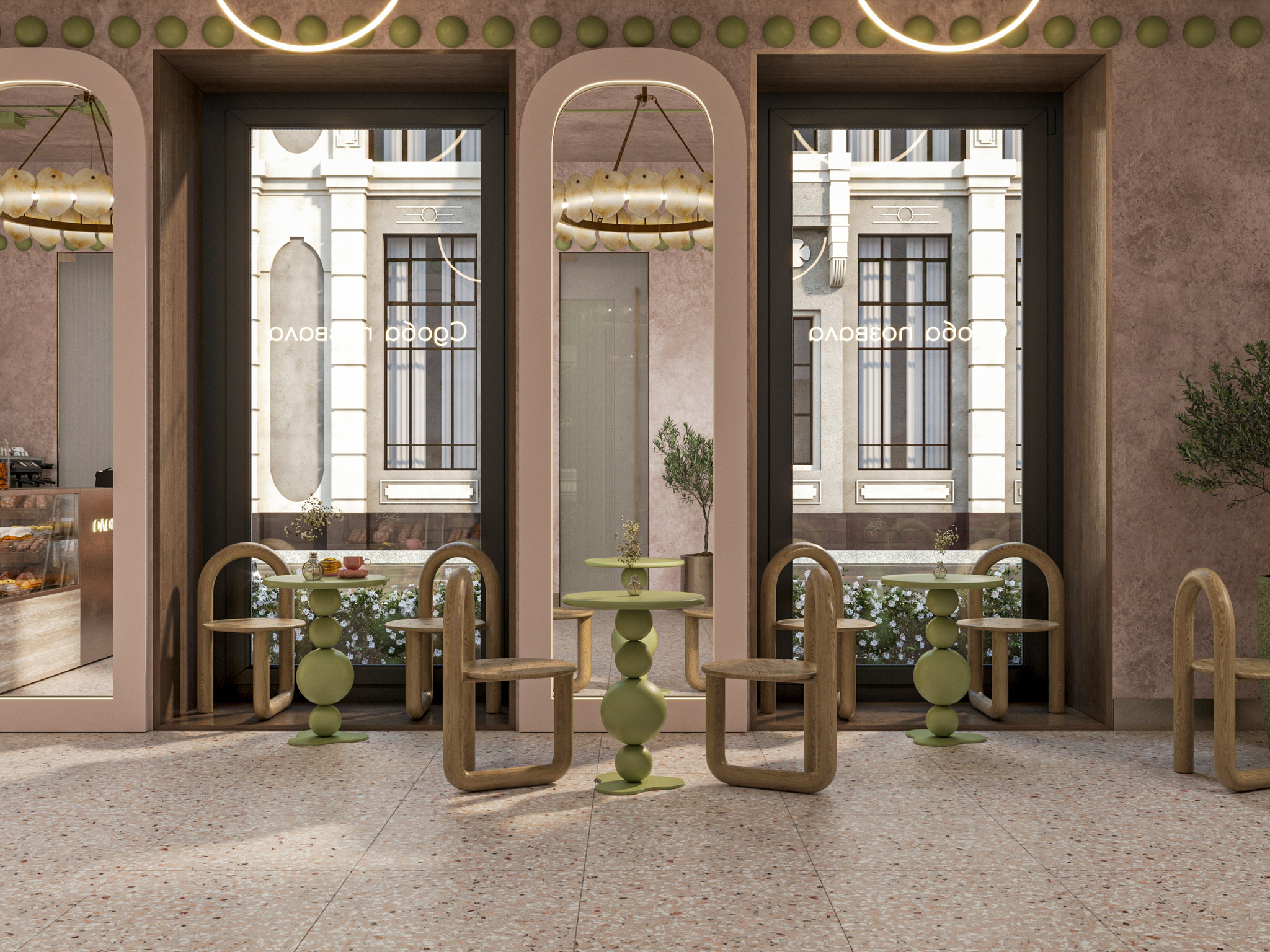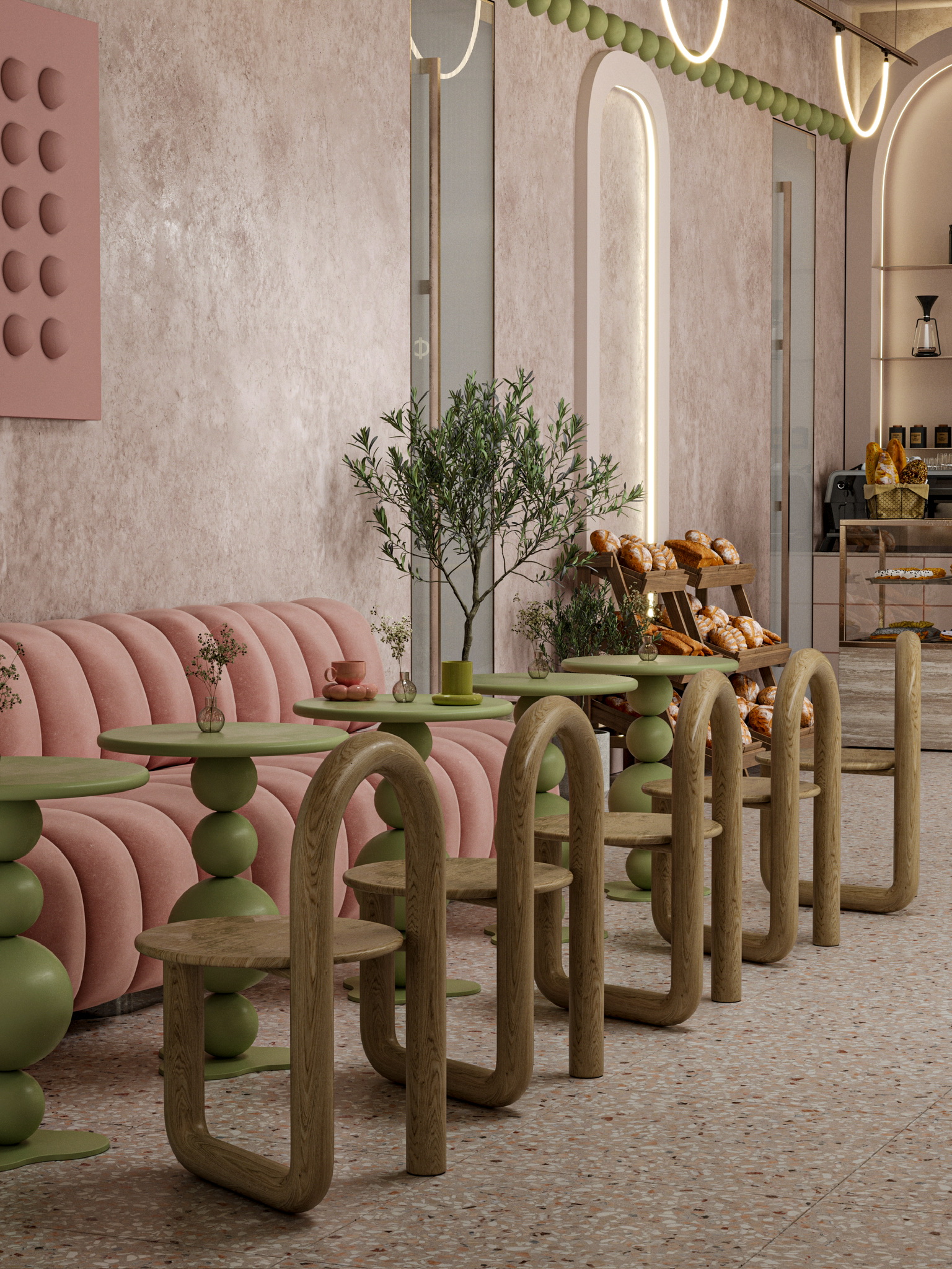 Пошуршав в желтом поисковике материалы, я влюбилась вот в эти, на последнем рендере. Сердце стало биться чаще, а нейронные связи уже рисовали образ заведения. Ну, а дальше дело техники: чих пых, расстановка, моделирование, настройка материалов, пререндеры и, наконец, финалочки. Ну и самая финалочка, прогнать пару рендеров в ИИ для атмосфэры. Не зря же с меня ежемесячно списываются мои честно заработанные на удивительный и одновременно пугающий в своей реалистичности искусственный интеллект.